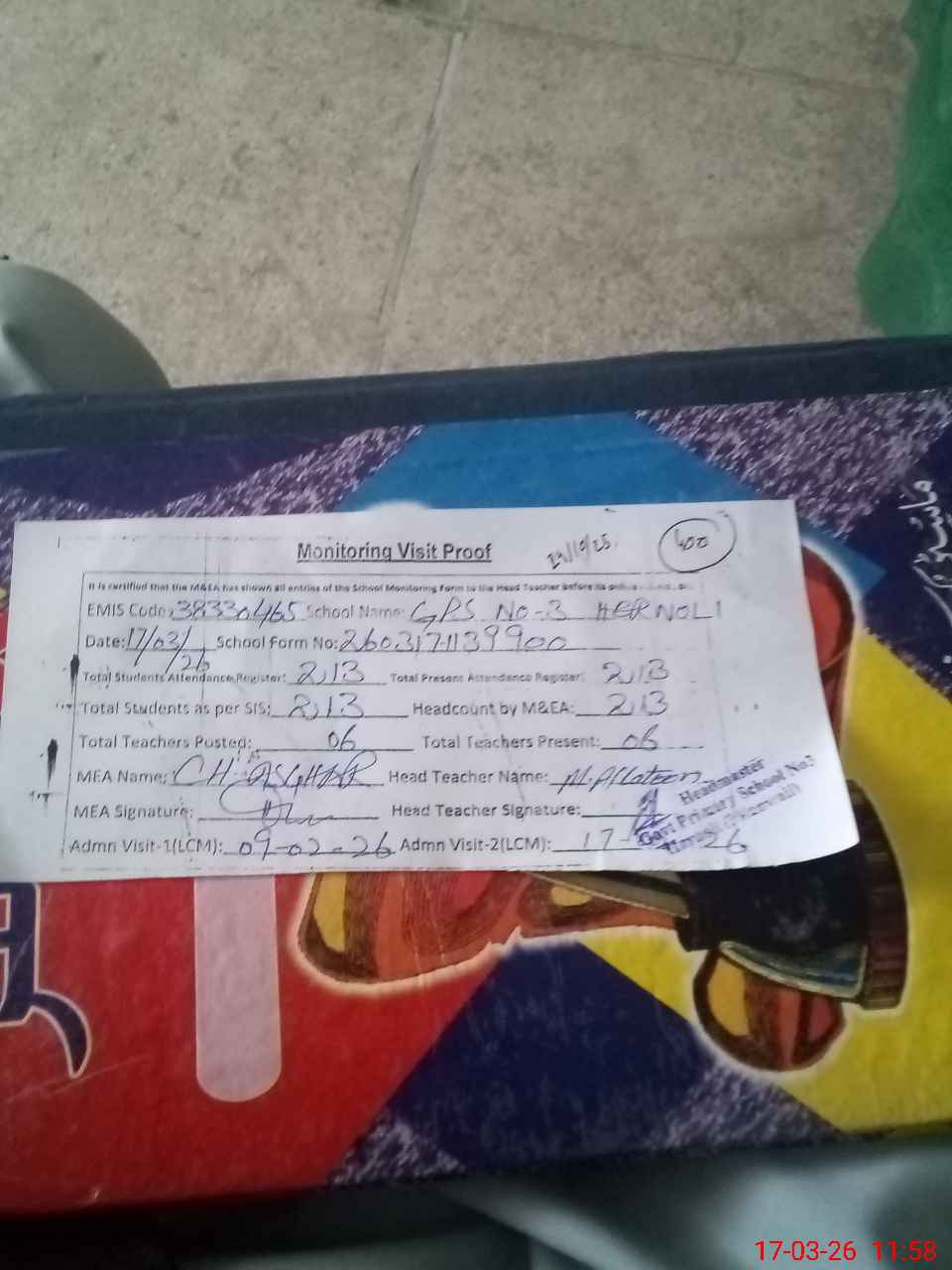 | EMIS Code: 38330465 | Name of School: GPS NO. 3 HERNOLI | |||