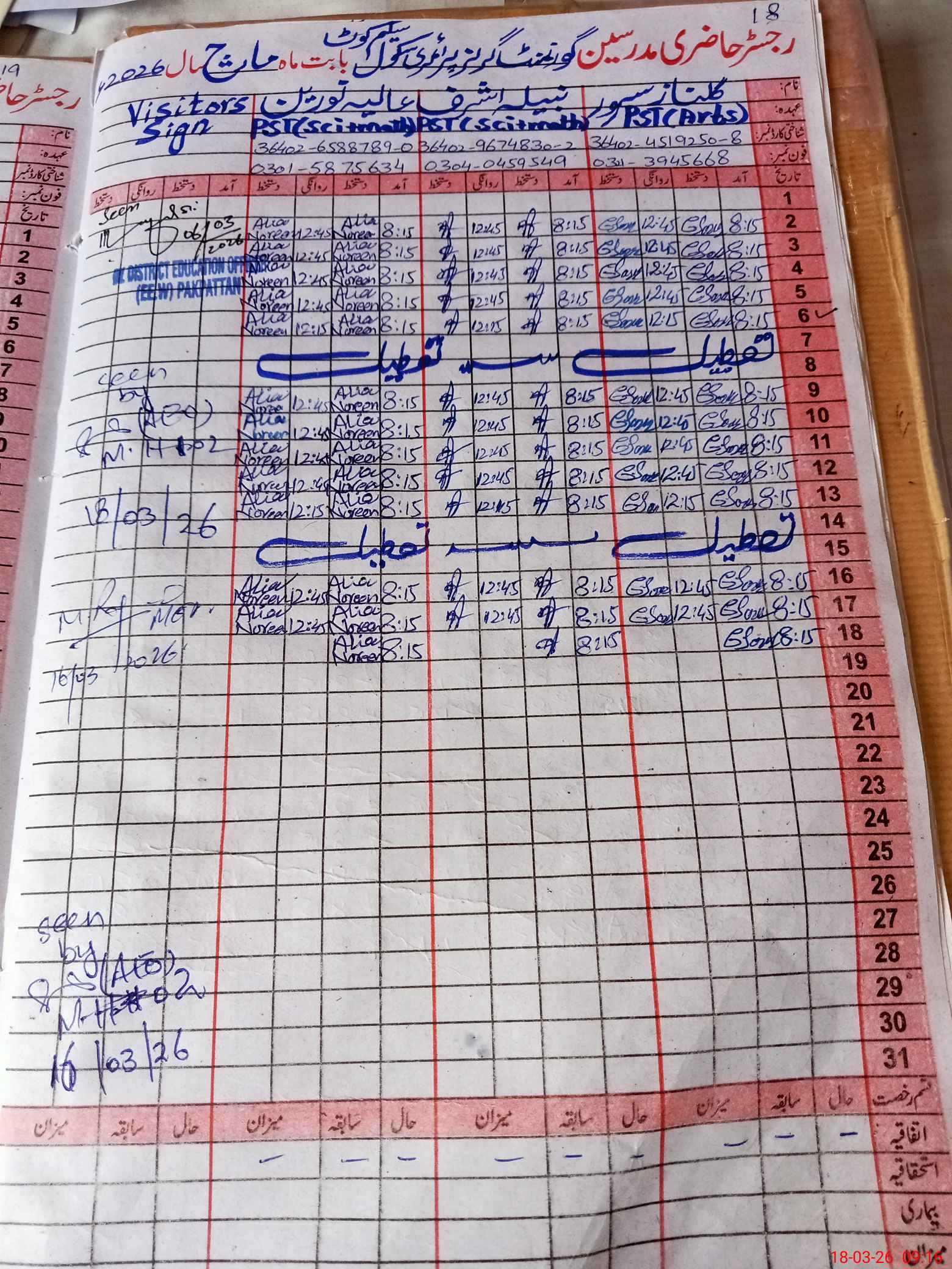 | Name: Na**** As**** Designation: (School Headmaster's/Headmistress's) PST Phone/Cell Number: 03**** |
