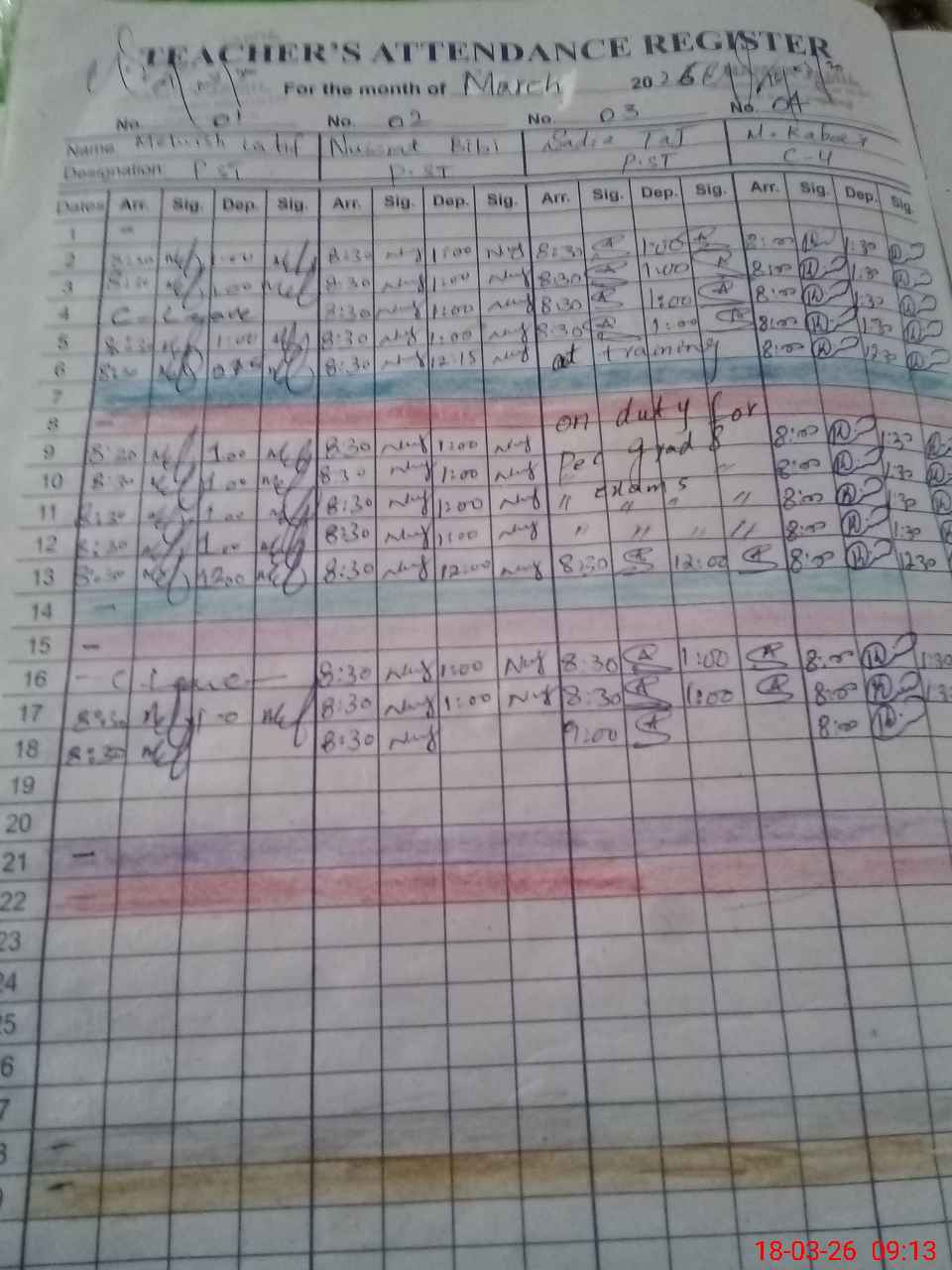 | 37**** | Sa**** Ta**** | PST Science/Maths | Regular | 0 | 0 | 0 | 0 | 0 | 0 | 0 | 0 | 0 | Absent (Un-Authorized) |