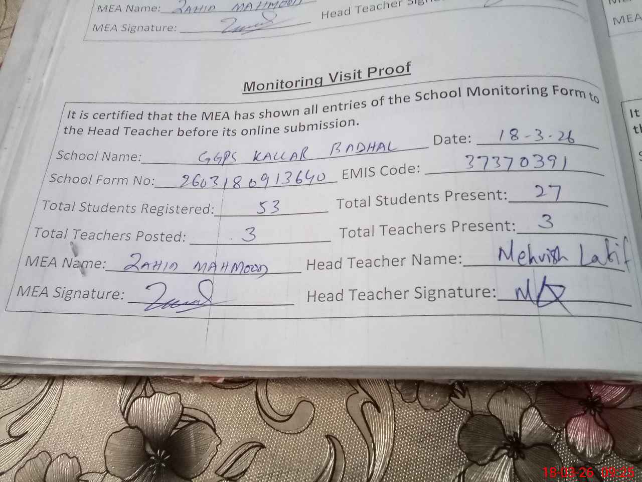 | EMIS Code: 37370391 | Name of School: GGPS KALLAR BADHAL | |||