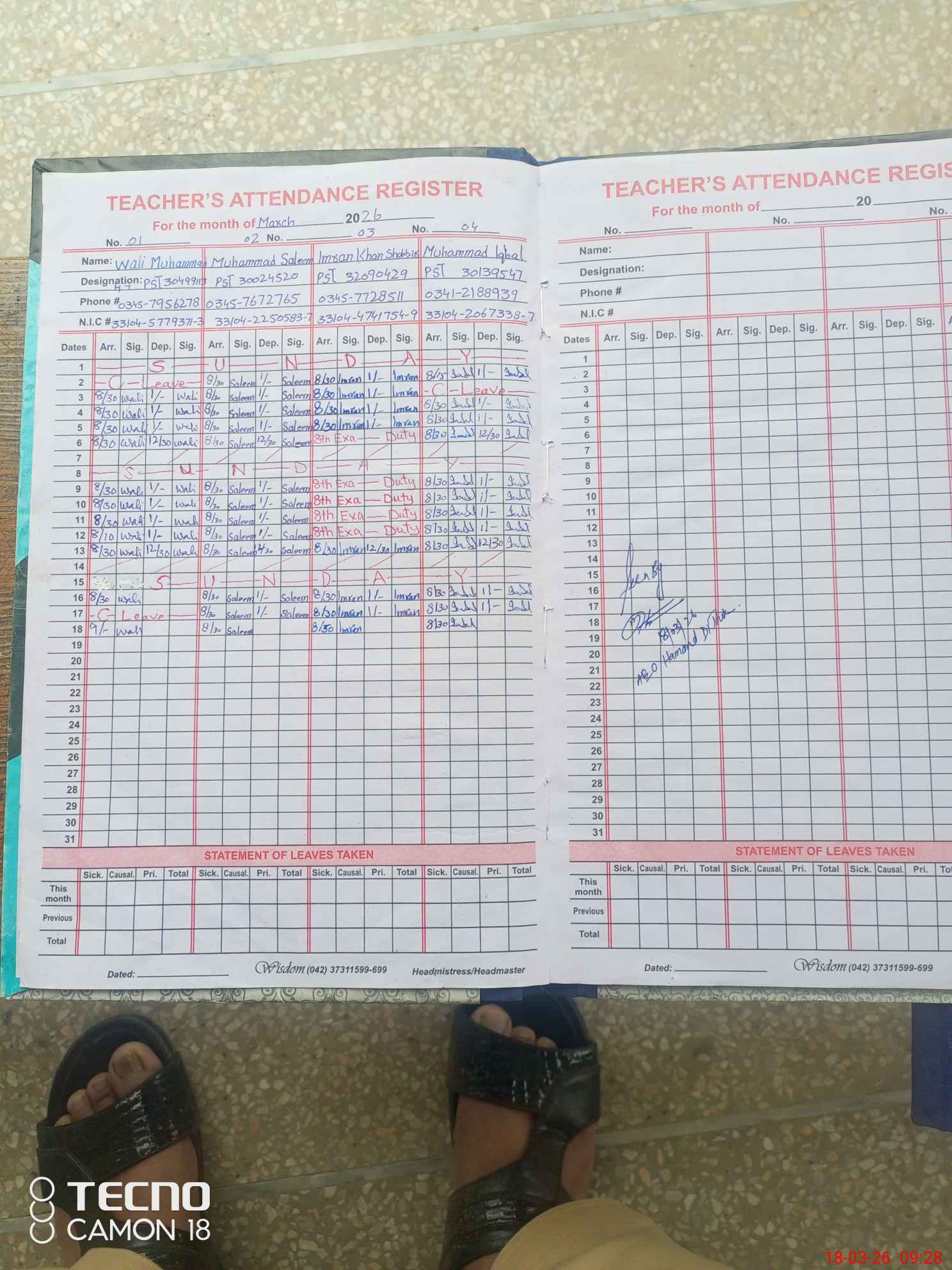 | Name: WA**** MU**** Designation: (School Headmaster's/Headmistress's) PST Phone/Cell Number: 03**** |