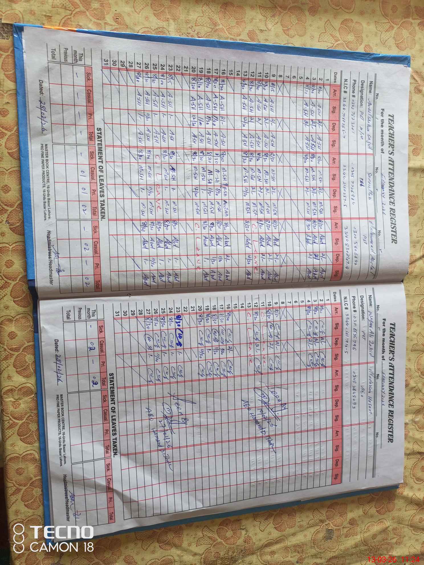 | Name: AB**** SH**** SA**** Designation: (School Headmaster's/Headmistress's) PST Phone/Cell Number: 03**** |