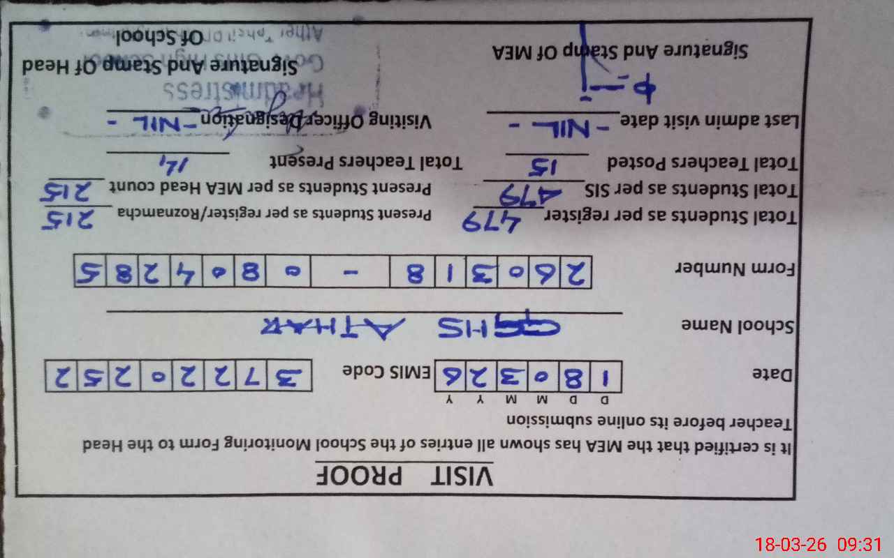 | EMIS Code: 37220252 | Name of School: GGHS ATHAR | |||