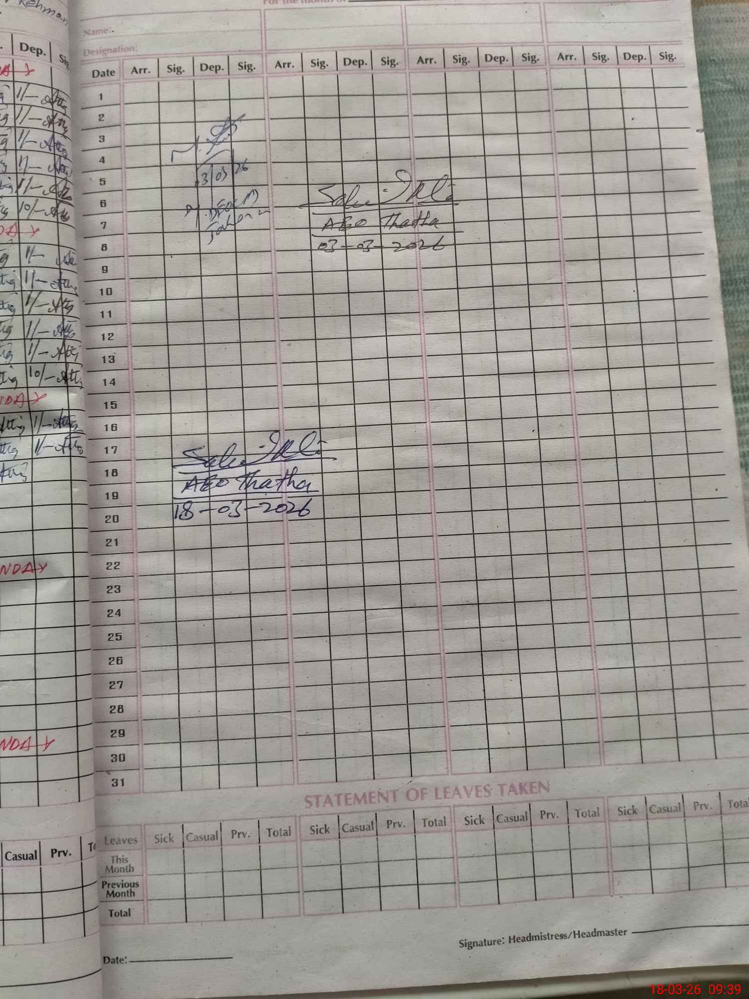 | Monitoring Date: 18-03-2026 | Start Time: 18-03-2026 09:30 AM | End Time: 18-03-2026 09:39 AM | Name of MEA: Sa**** Al**** | |