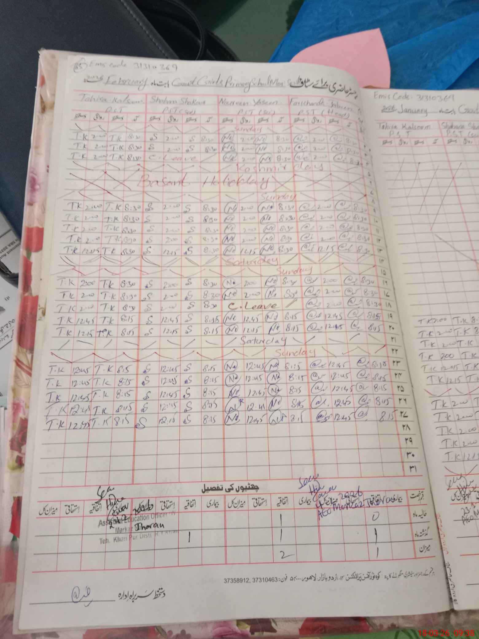 | District: RAHIMYAR KHAN | Tehsil: KHANPUR | Markaz: JHORAN-FEMALE | Level: Primary | |