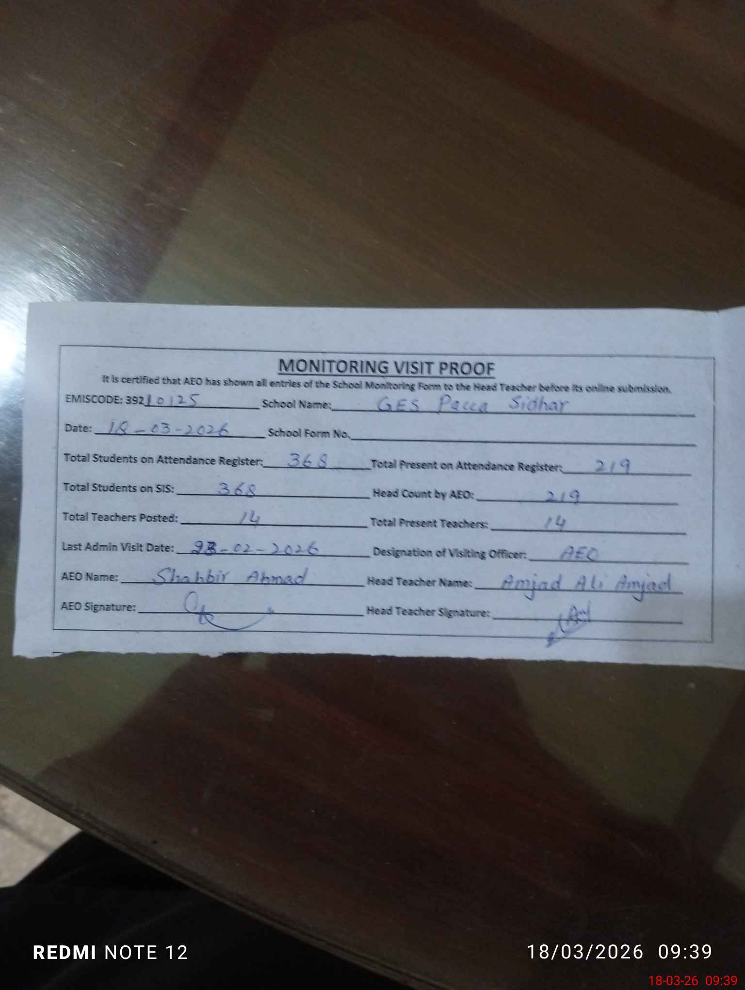 | EMIS Code: 39210125 | Name of School: GES PACCA SIDHAR | |||