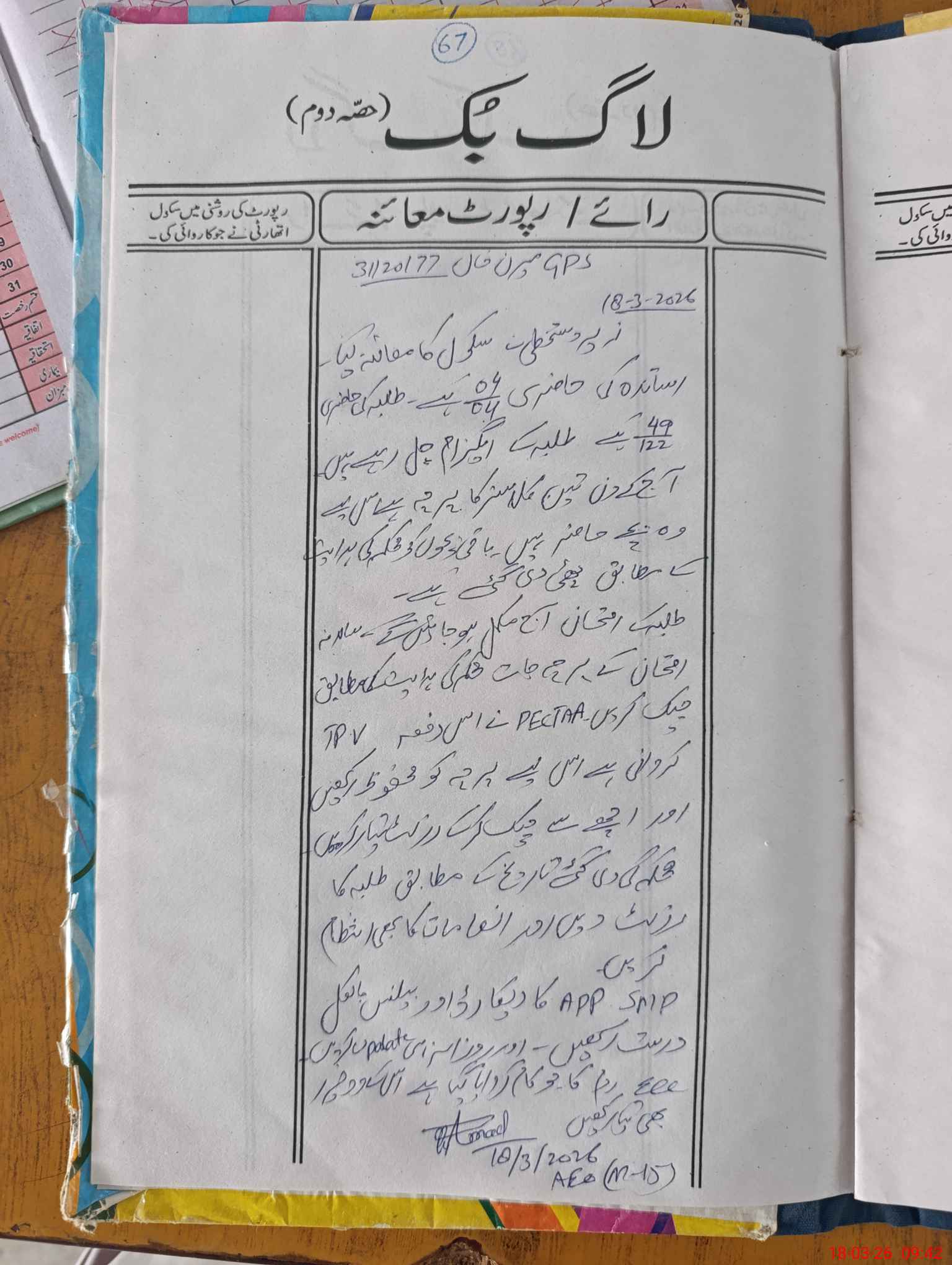 | Certified that this School was Inspected by the Undersigned MEA/DMO Today and the Information Stated Above is as Per Record. | |||||