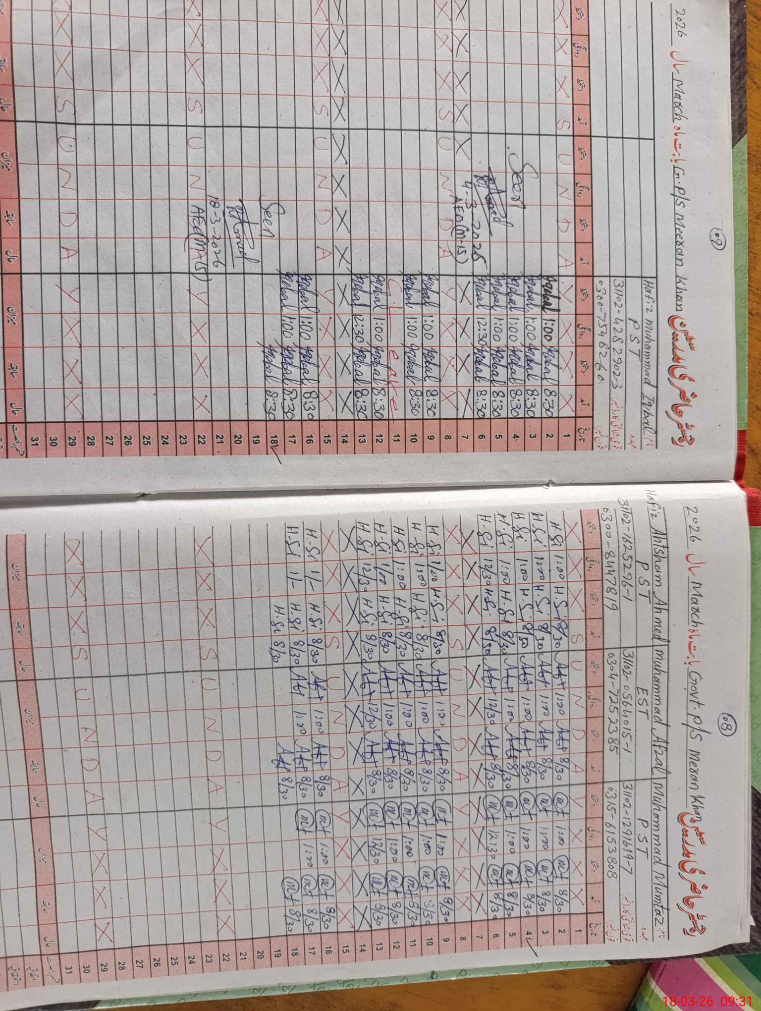 | Name: MU**** MU**** Designation: (School Headmaster's/Headmistress's) PST Phone/Cell Number: 03**** |