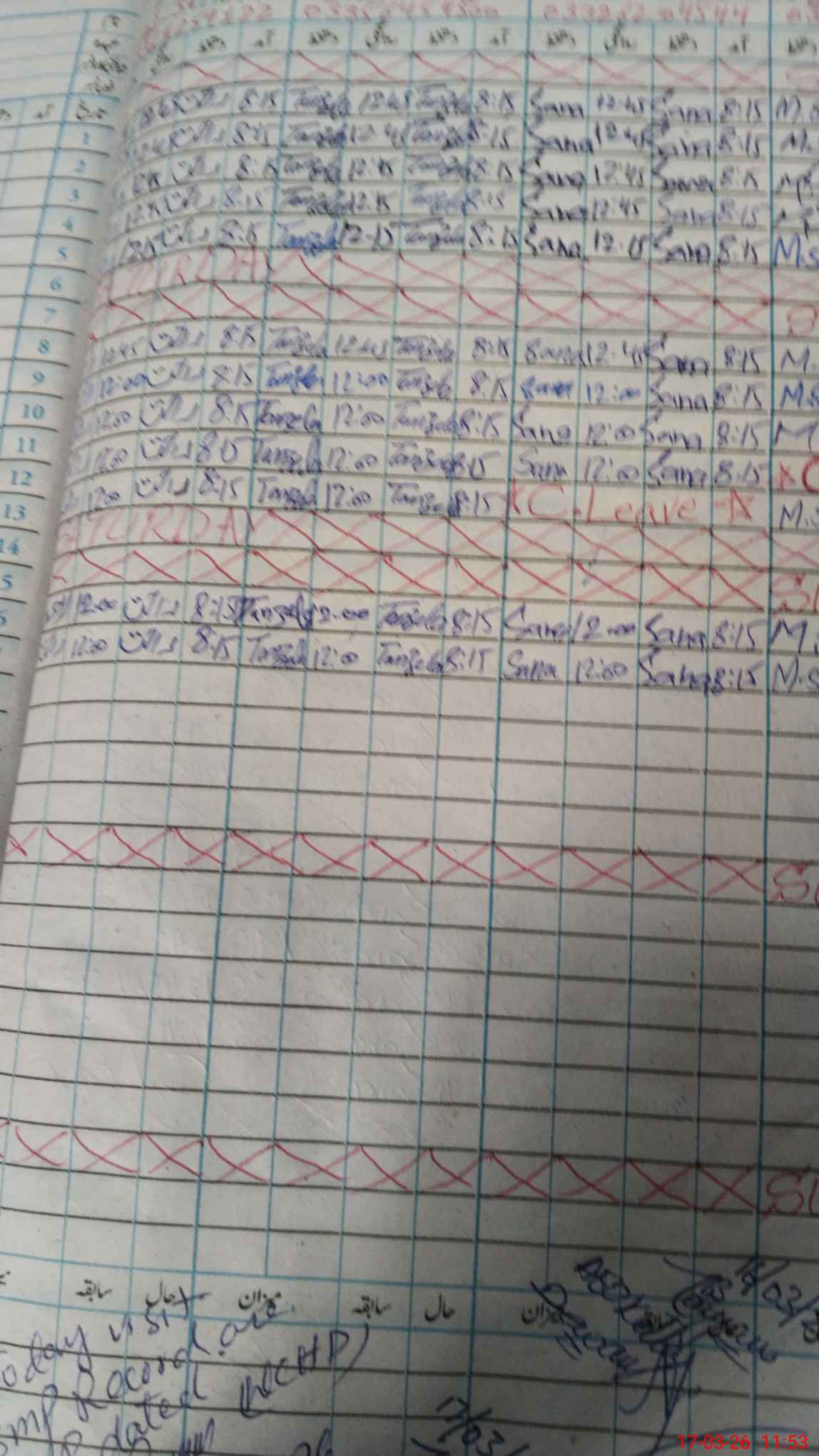 | CNIC | Full Name | Designation | R/C | Absence During Last Calender Month |