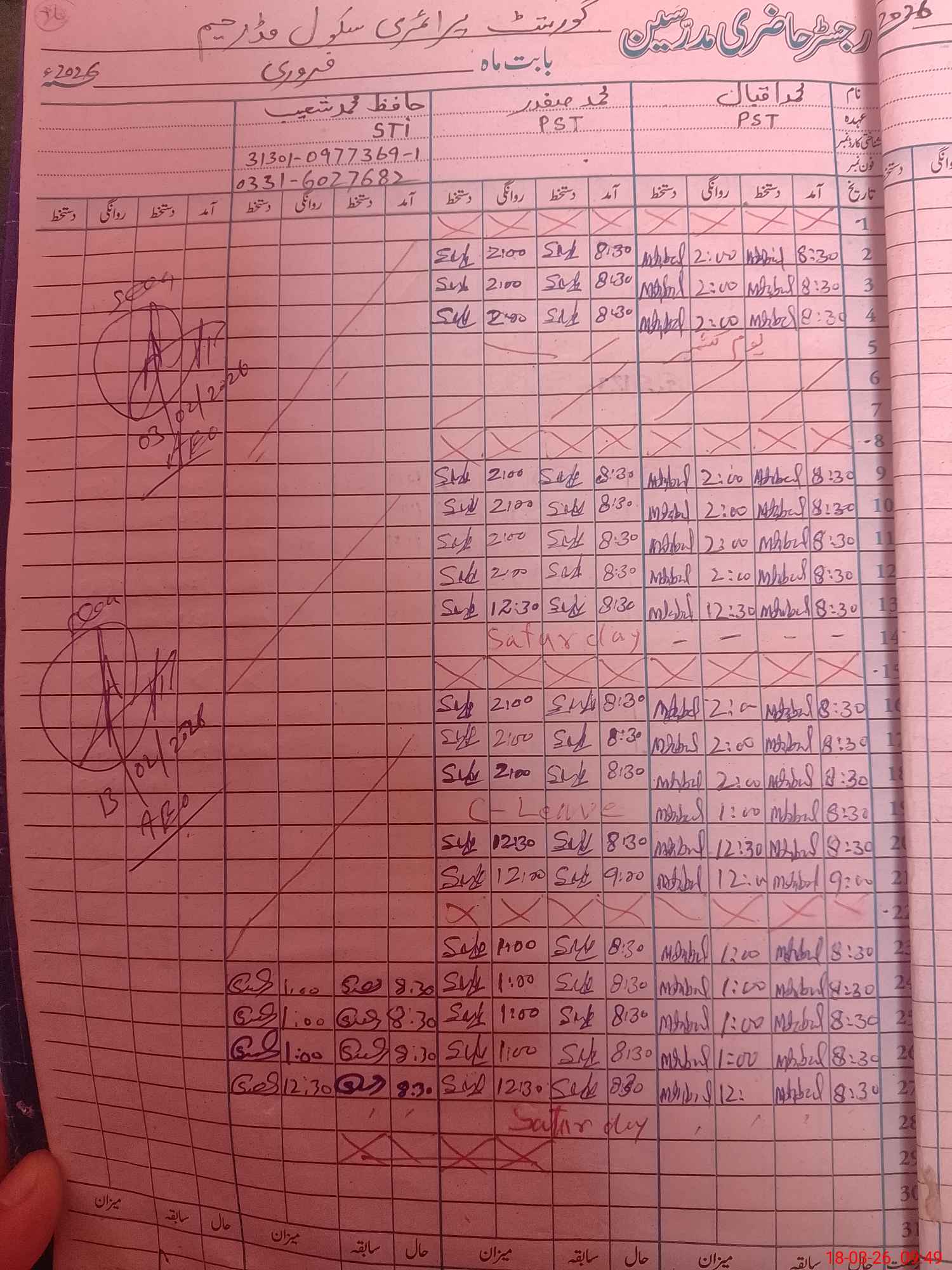 | Name: MU**** IQ**** Designation: (School Headmaster's/Headmistress's) PST Phone/Cell Number: 03**** |