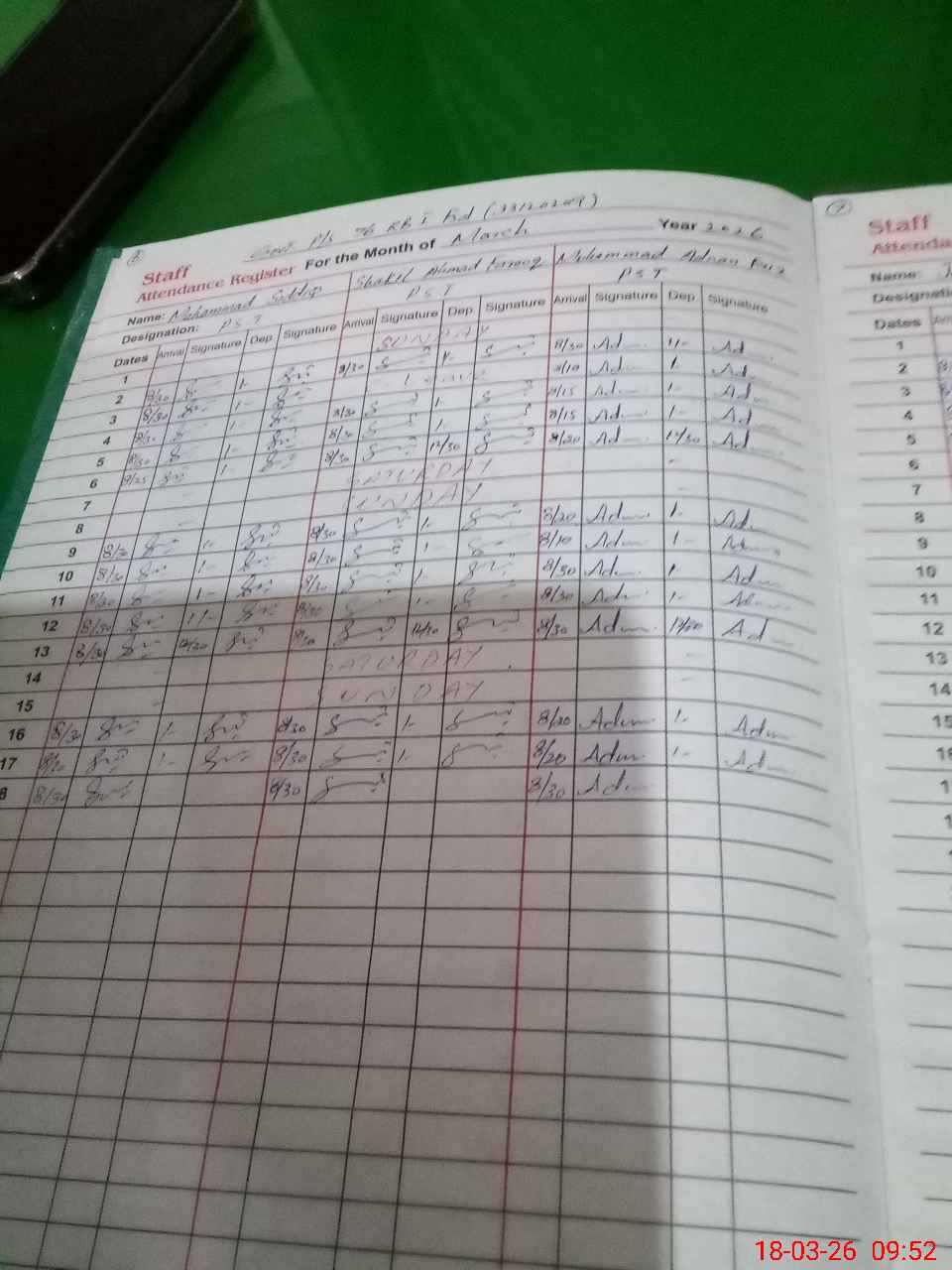 | Name: MU**** SI**** Designation: (School Headmaster's/Headmistress's) PST Phone/Cell Number: 03**** |
