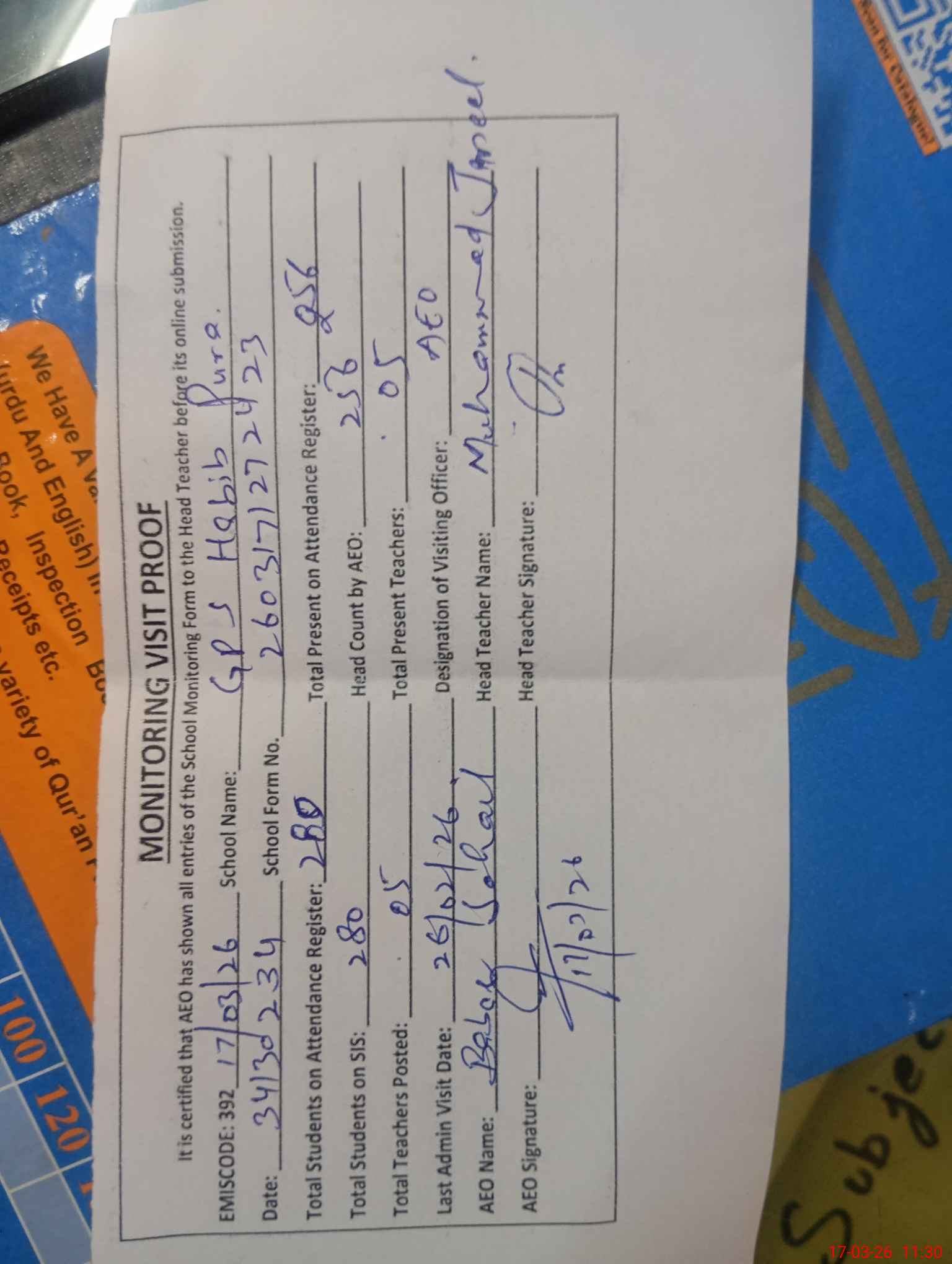 | EMIS Code: 34130234 | Name of School: GPS HABIB PURA | |||