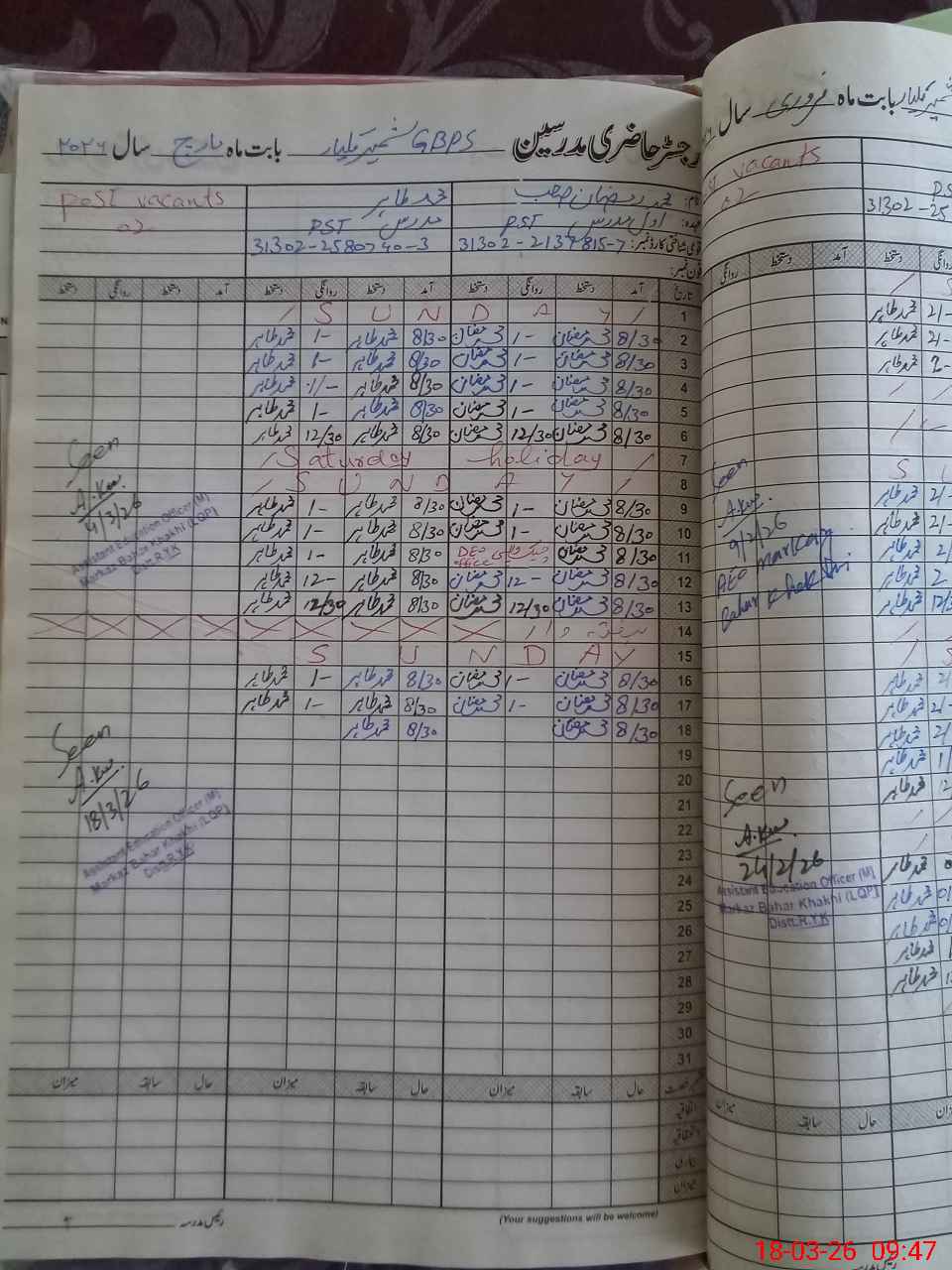 | Name: Mu**** Rm**** Designation: (School Headmaster's/Headmistress's) PST/PTC/JV Phone/Cell Number: 03**** |