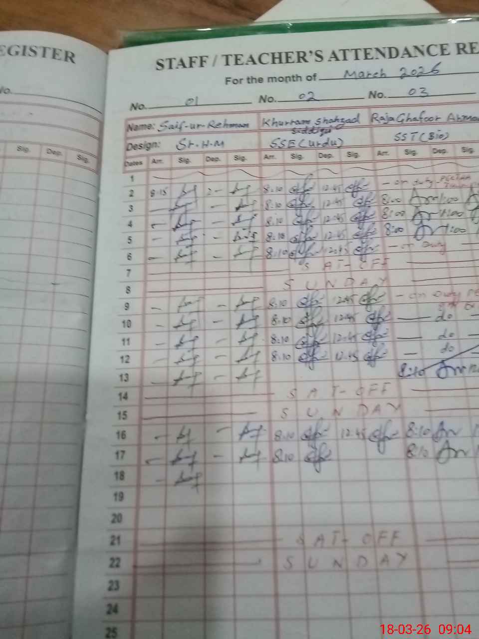 | Name: Sa**** UrRe**** Designation: (School Headmaster's/Headmistress's) SR HM Phone/Cell Number: 03**** |