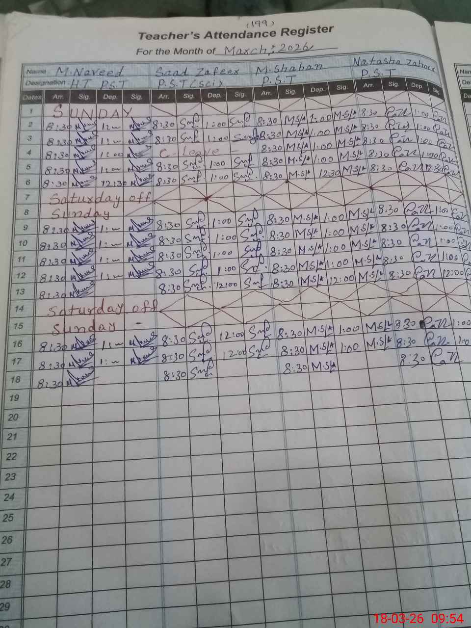| CNIC | Full Name | Designation | R/C | Absence During Last Calender Month |