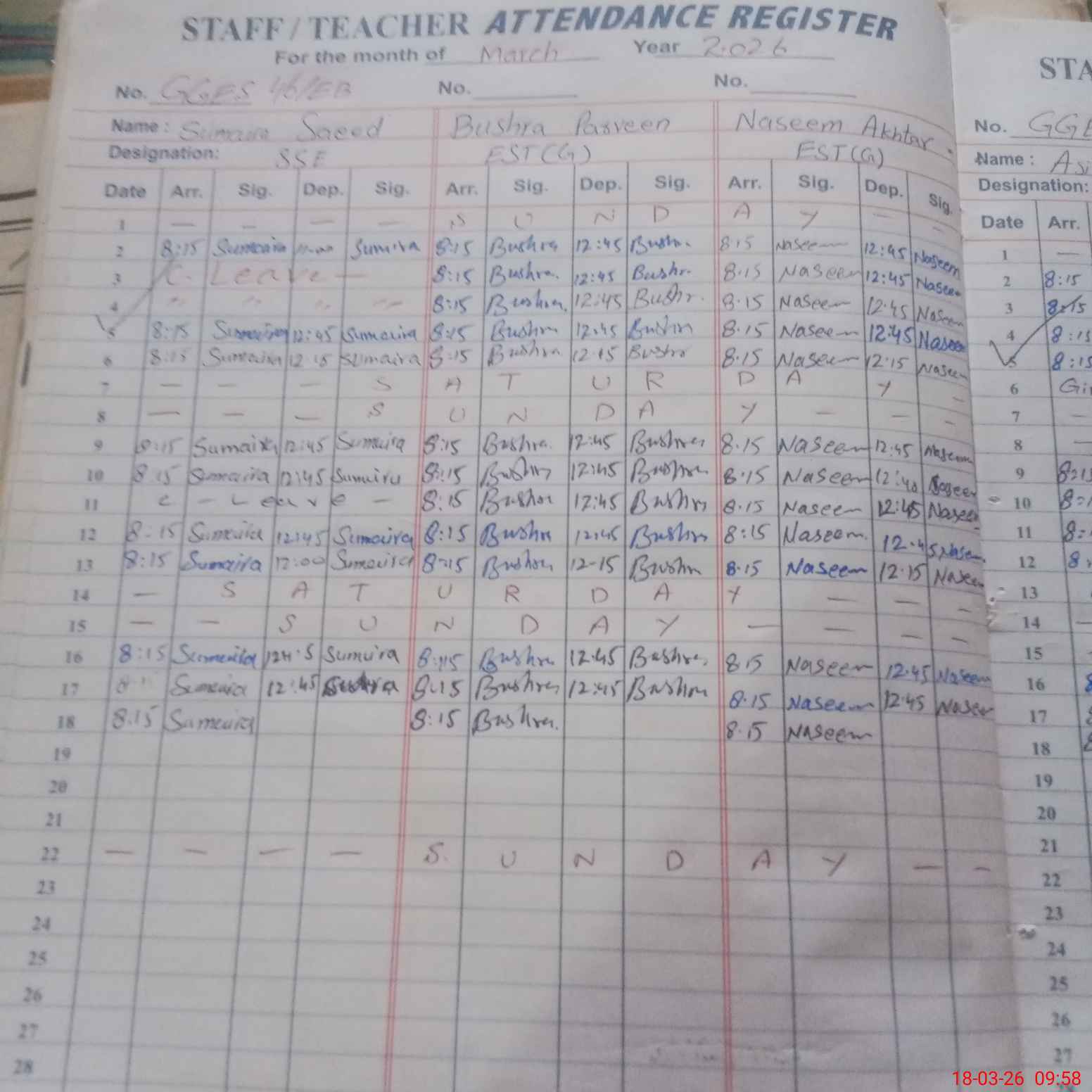 | Monitoring Date: 18-03-2026 | Start Time: 18-03-2026 09:29 AM | End Time: 18-03-2026 09:59 AM | Name of MEA: Za**** Mu**** | |