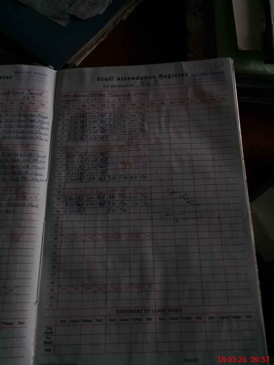 | Attendance Register | Head Teacher | MEA with School | Visit Proof |