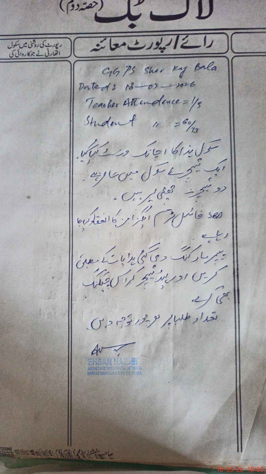 | EMIS Code: 39320596 | Name of School: GGPS SHER KAY BALA | |||