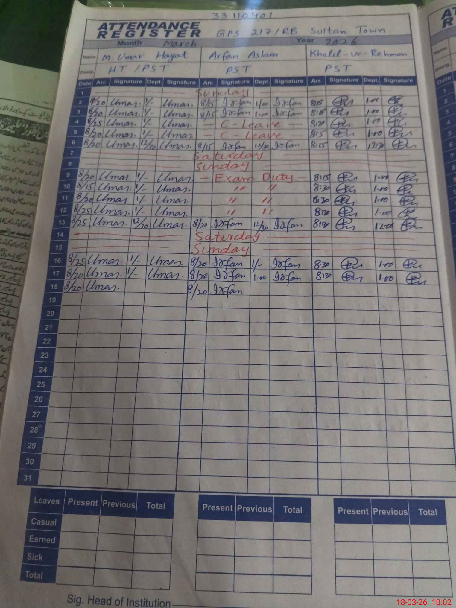 | EMIS Code: 33110401 | Name of School: GPS 217 RB SULTAN WALA TOWN | |||