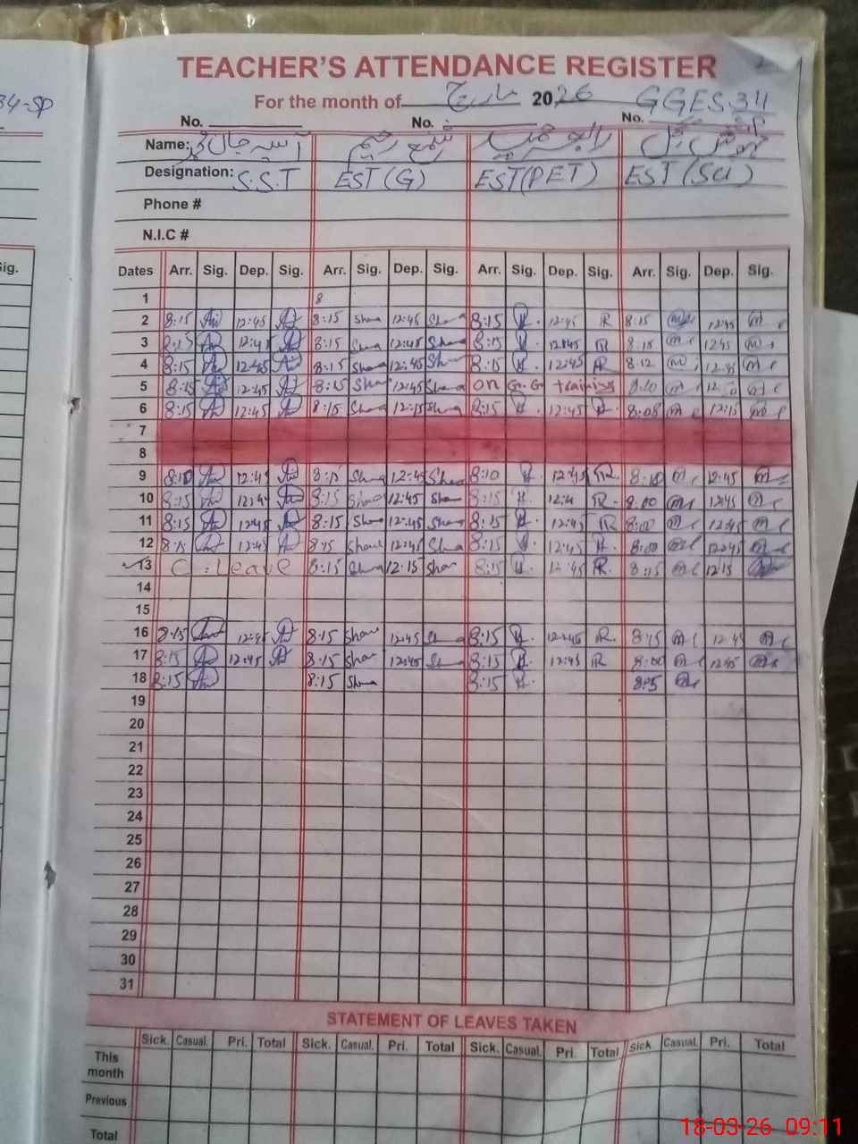 | Name: AA**** JA**** MU**** Designation: (School Headmaster's/Headmistress's) SST (GENERAL) Phone/Cell Number: 03**** |