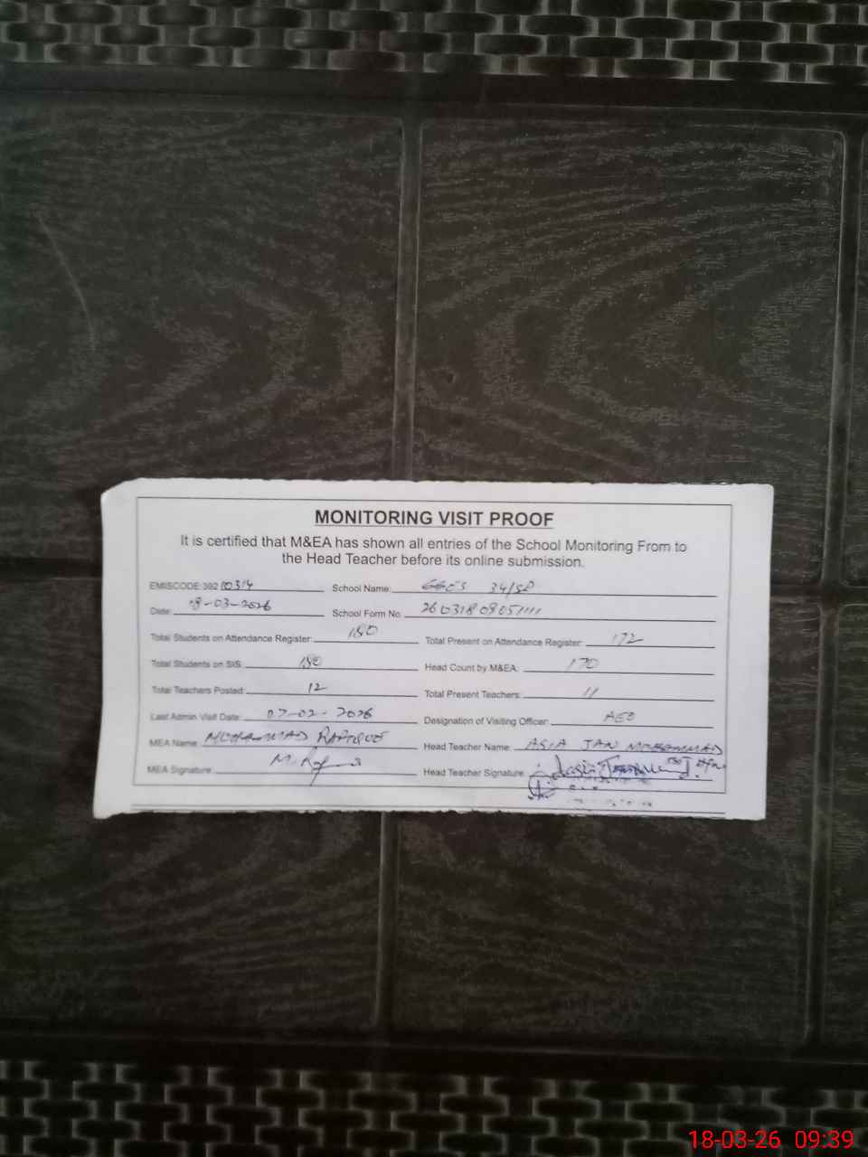| Certified that this School was Inspected by the Undersigned MEA/DMO Today and the Information Stated Above is as Per Record. | |||||