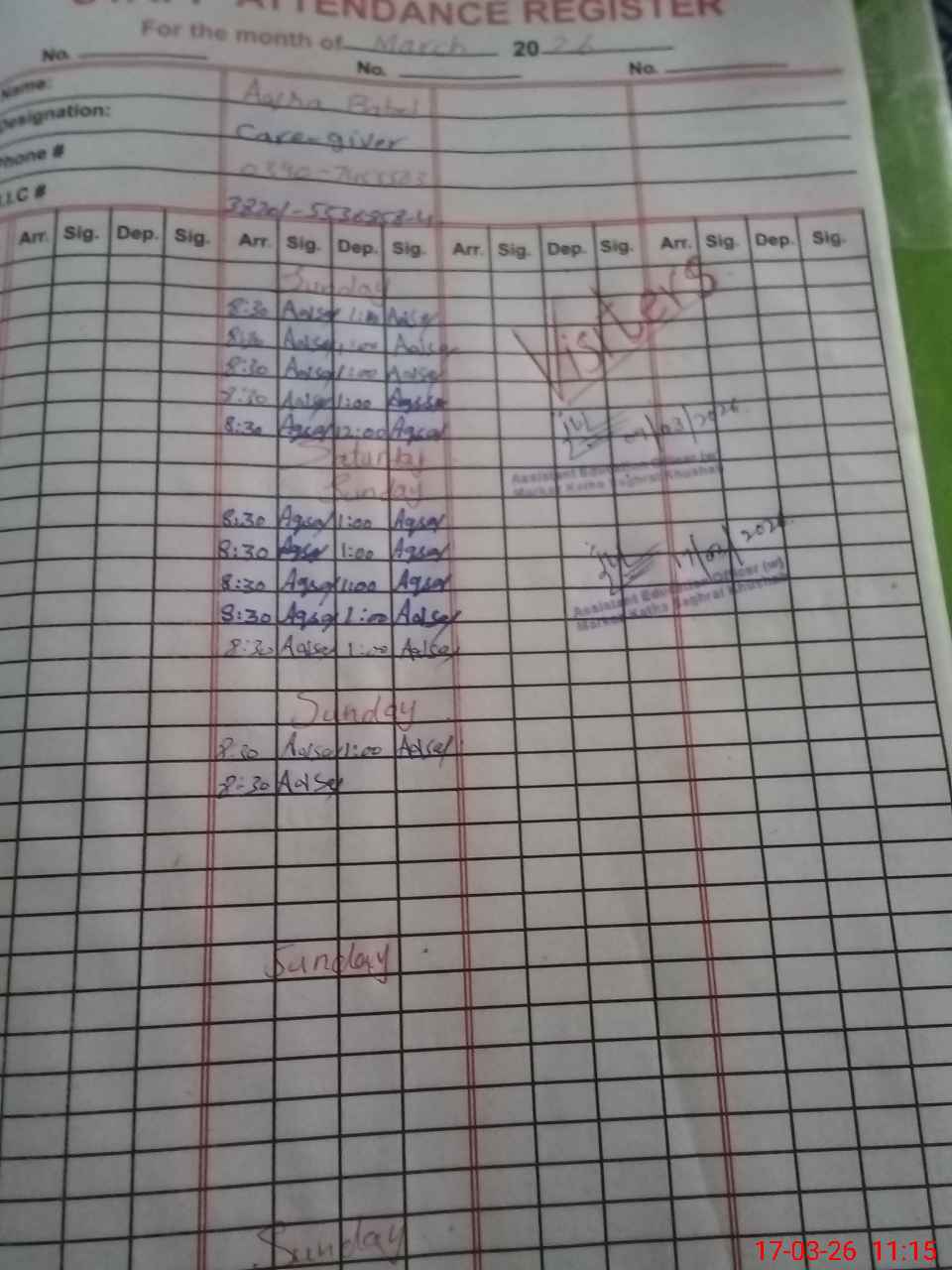 | Sr.No. | Visit Date | Designation | ||