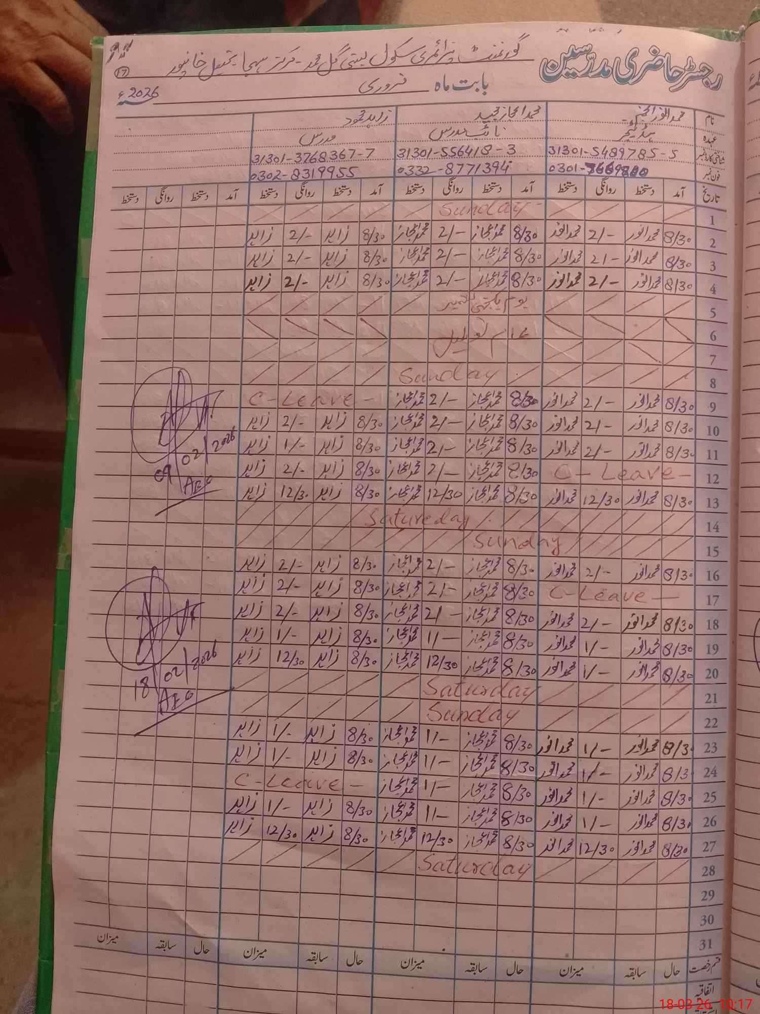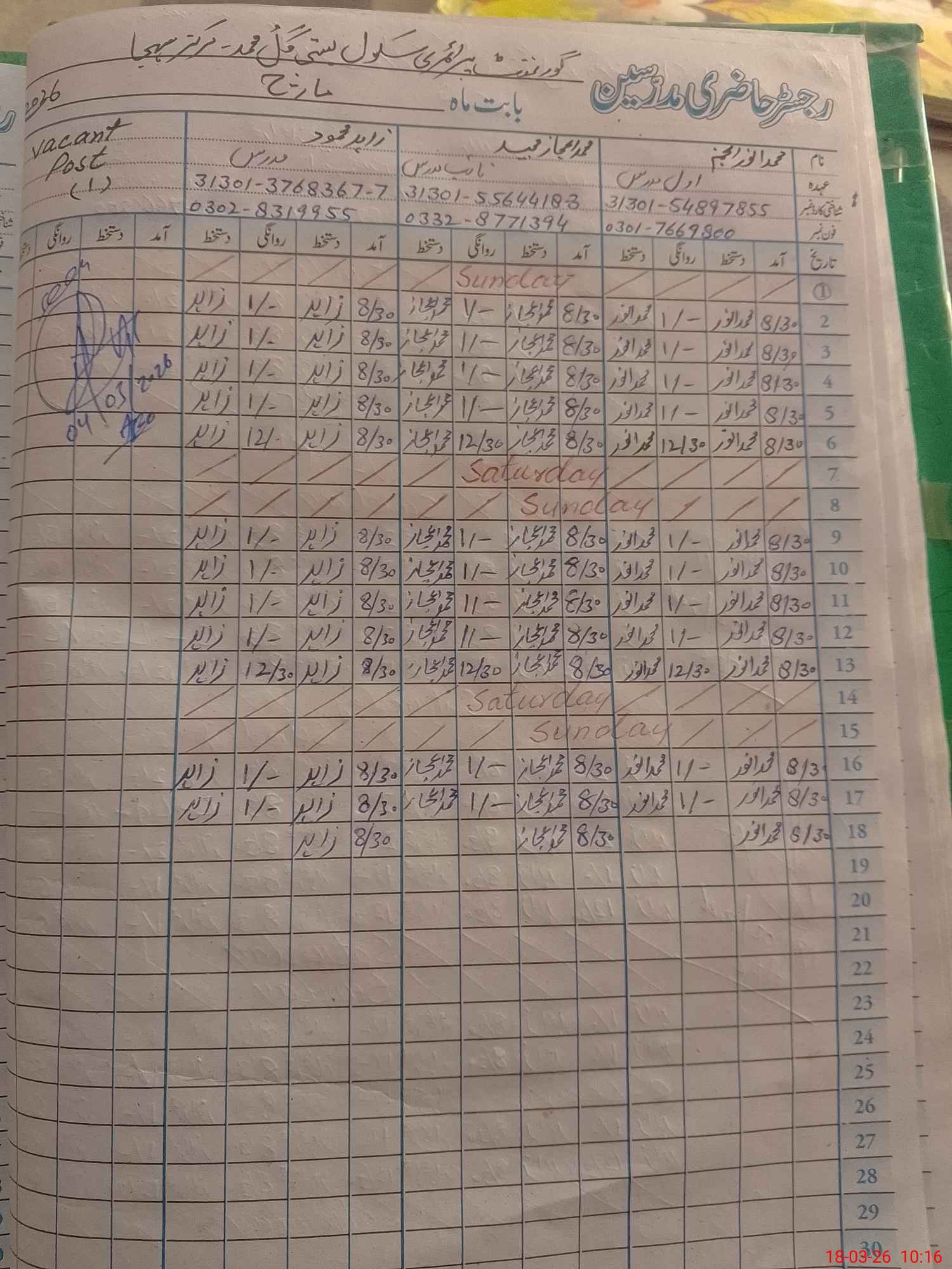 | Name: M.An**** An**** Designation: (School Headmaster's/Headmistress's) PST Phone/Cell Number: 03**** |