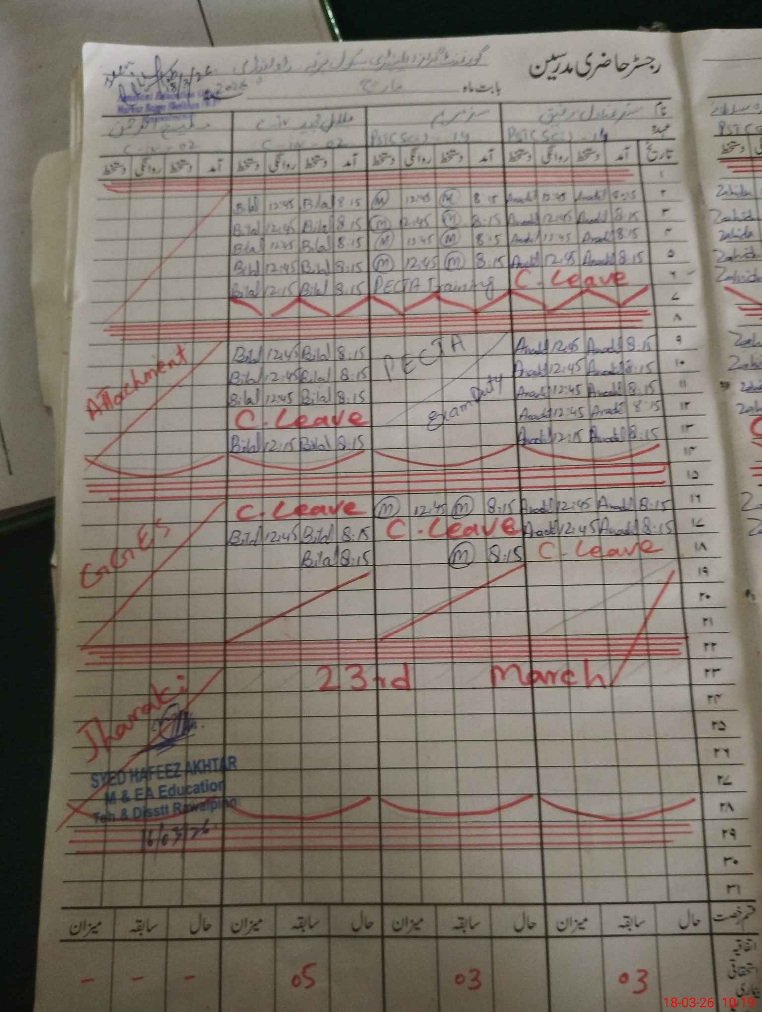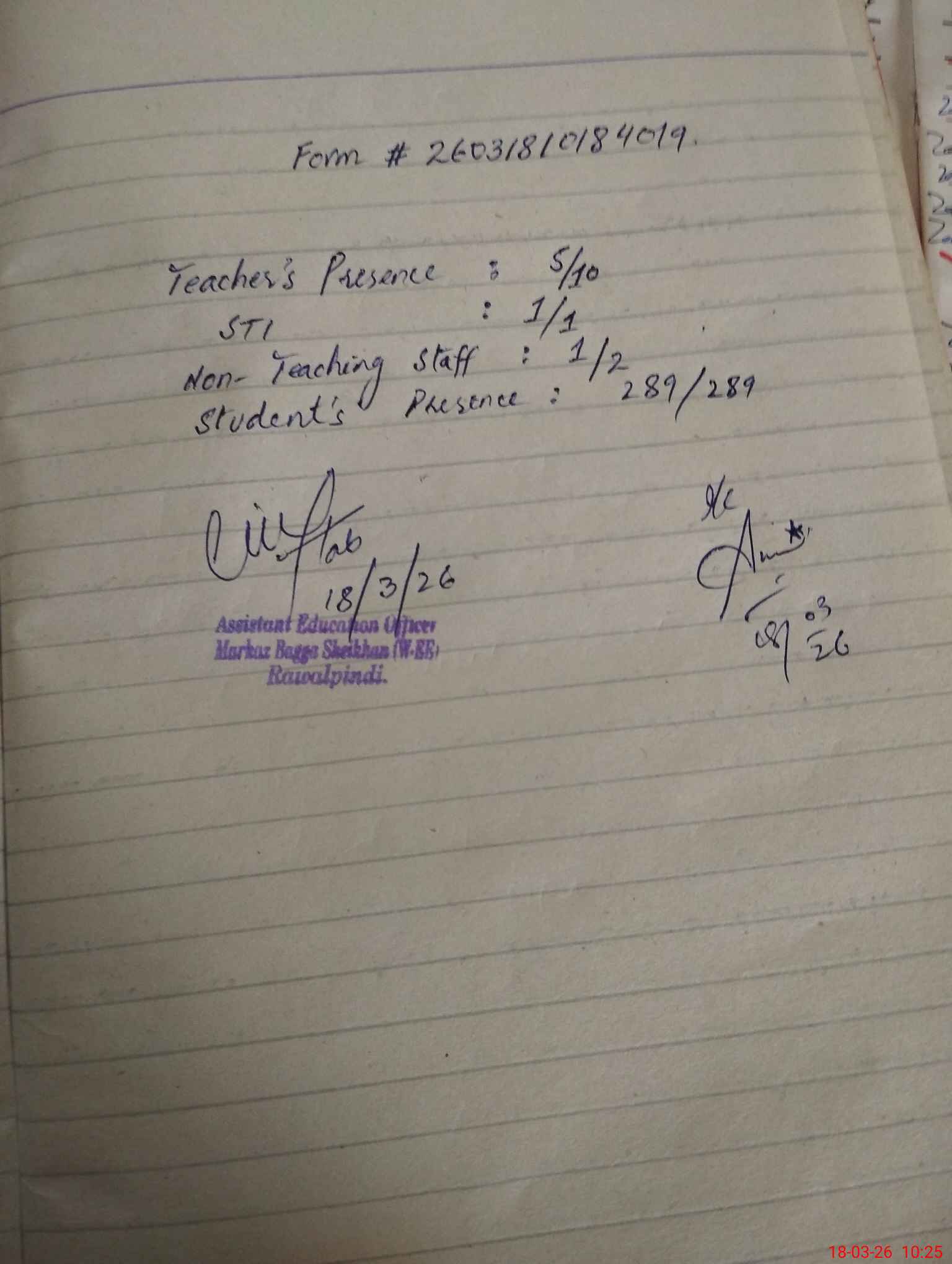 | Name: ZA**** RI**** Designation: (School Headmaster's/Headmistress's) S.S.T.(G) Phone/Cell Number: 03**** |