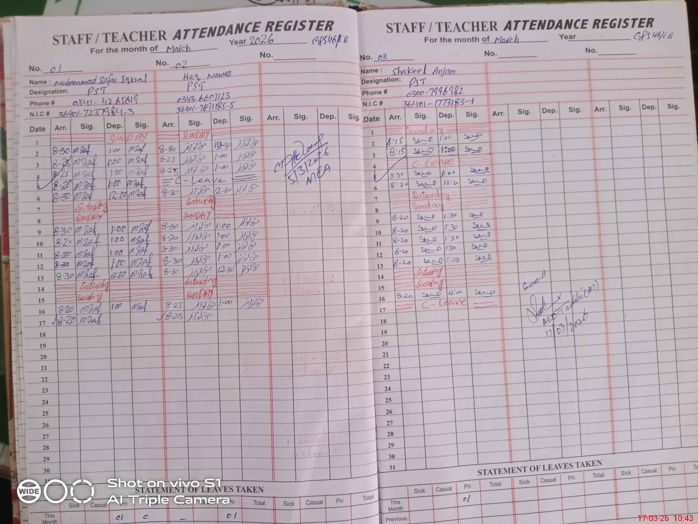 | Name: MU**** ZA**** IQ**** Designation: (School Headmaster's/Headmistress's) PST Phone/Cell Number: 03**** |
