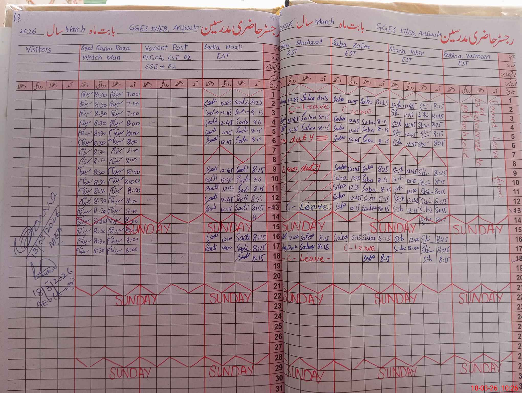 | Leave | Duty | Absent | Maternity | Medical | Ex- Pak |