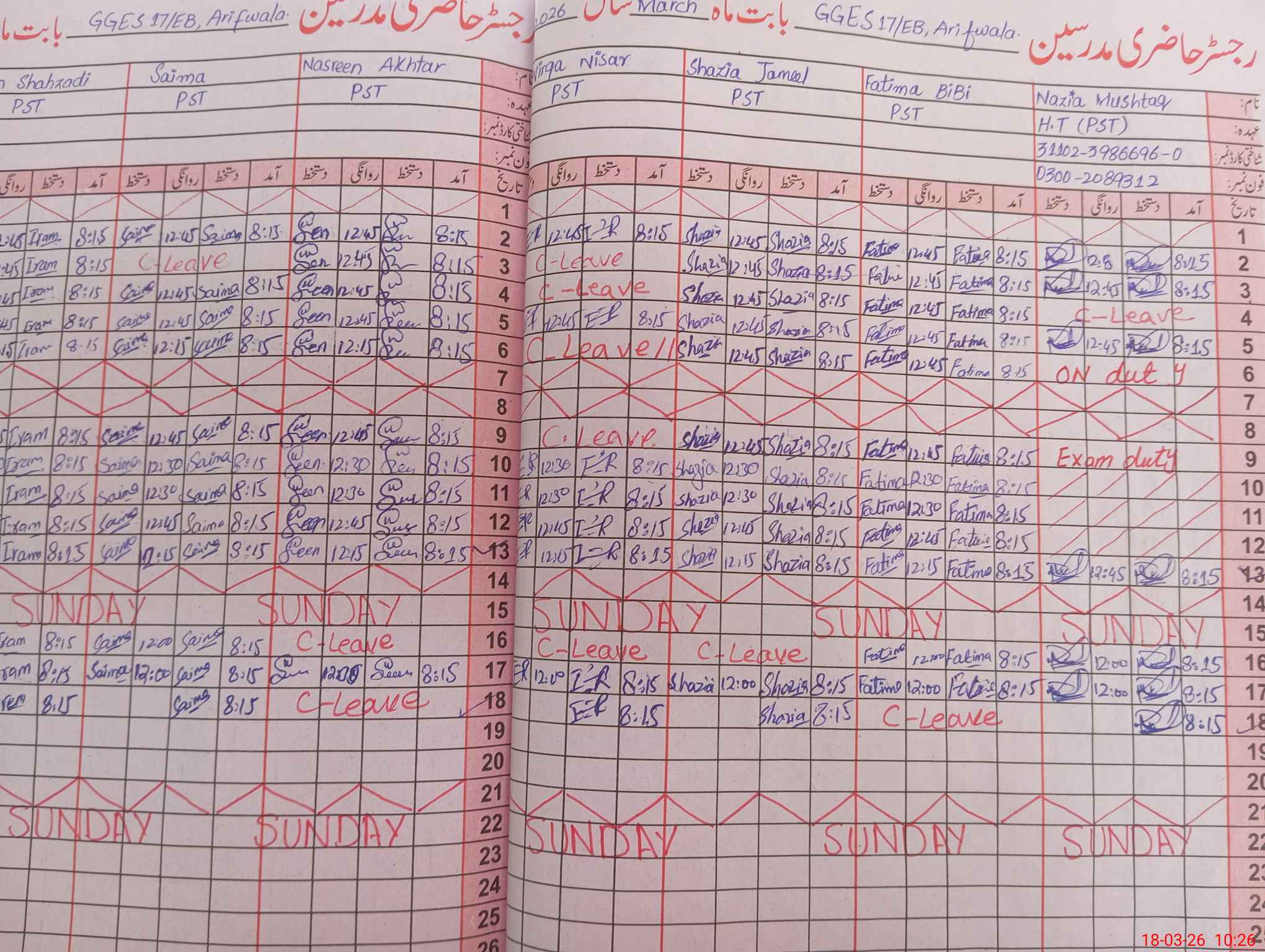 | Name: NA**** MU**** Designation: (School Headmaster's/Headmistress's) PST Phone/Cell Number: 03**** |