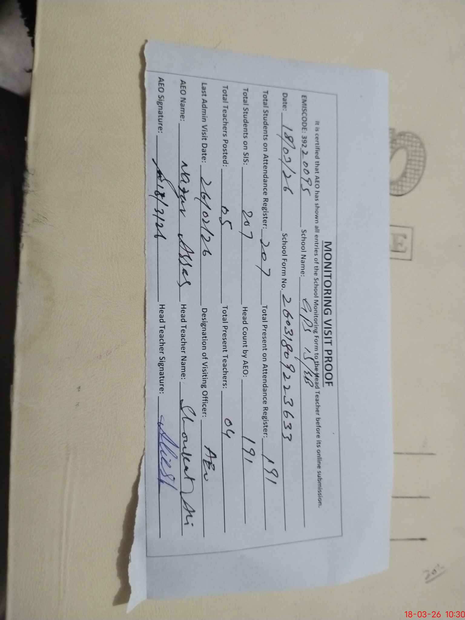 | Certified that this School was Inspected by the Undersigned MEA/DMO Today and the Information Stated Above is as Per Record. | |||||