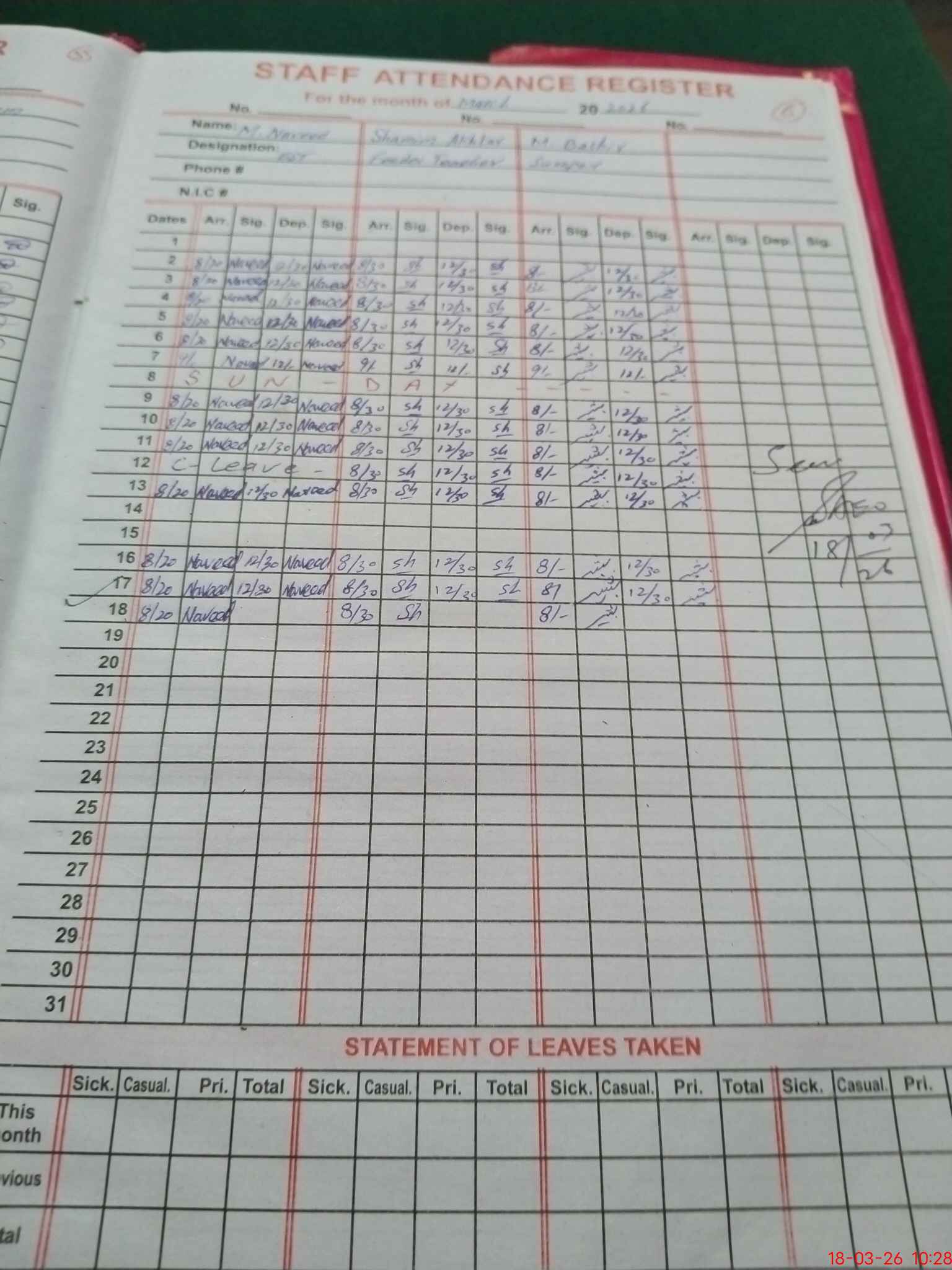 | Name: SH**** AL**** Designation: (School Headmaster's/Headmistress's) PST Phone/Cell Number: 03**** |