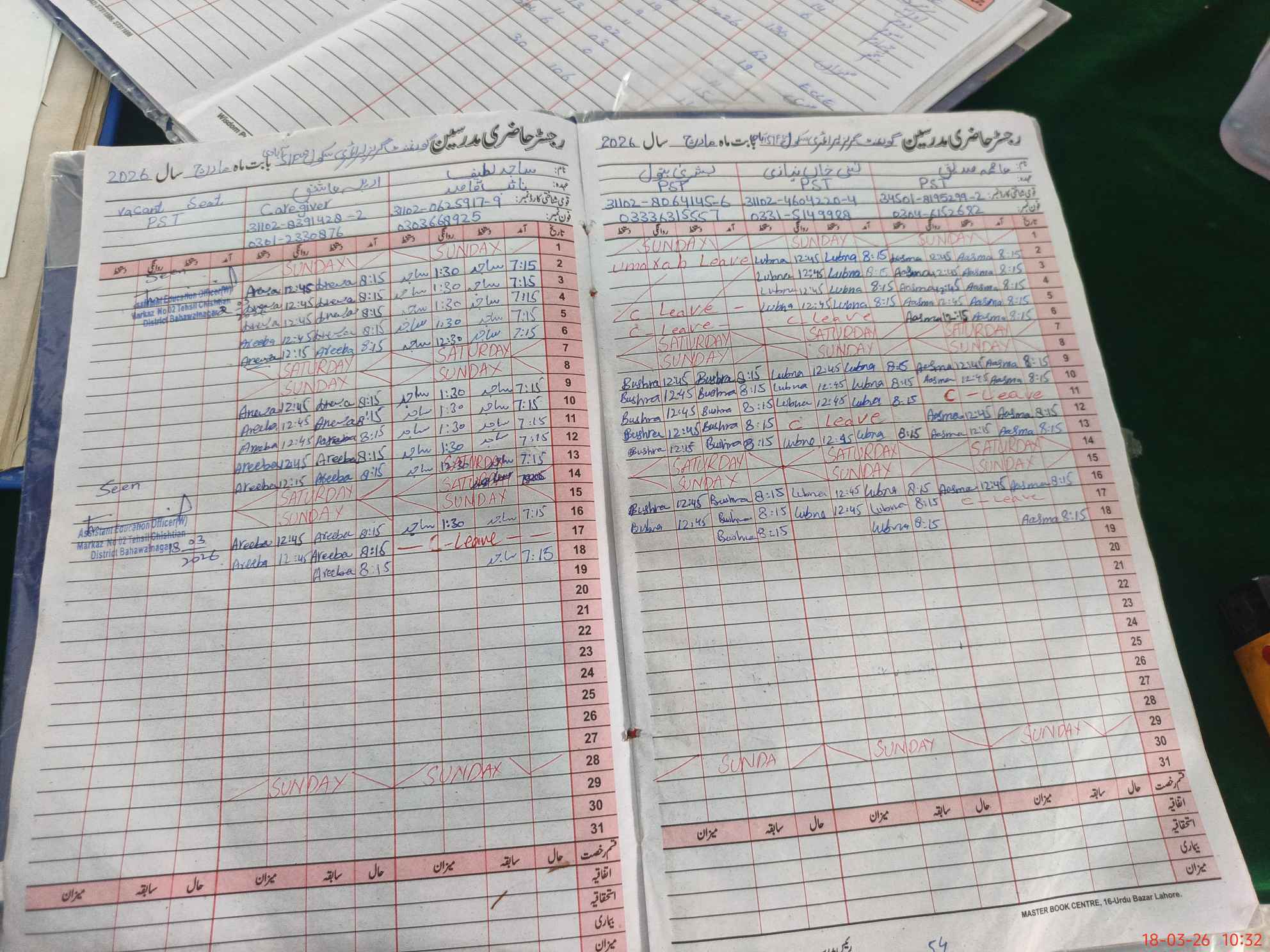 | Leave | Duty | Absent | Maternity | Medical | Ex- Pak |