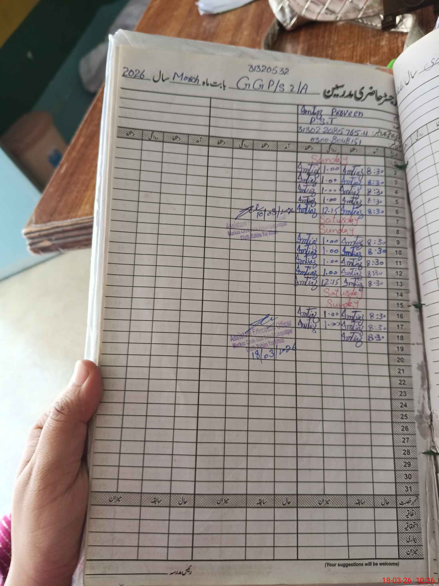 | Name: IM**** PA**** Designation: (School Headmaster's/Headmistress's) PST Phone/Cell Number: 03**** |