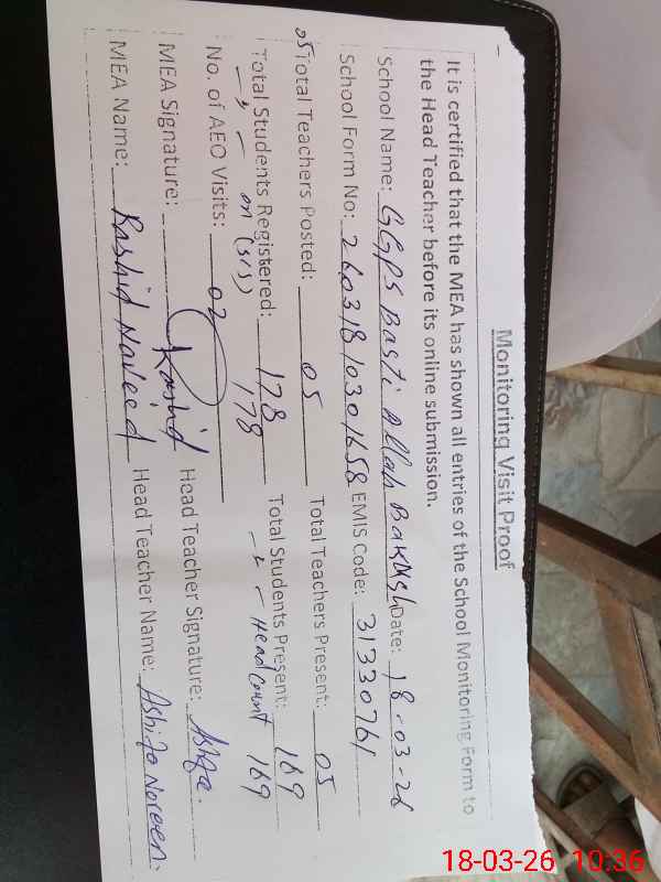 | EMIS Code: 31330761 | Name of School: GGPS BASTI ALLAH BAKSH | |||