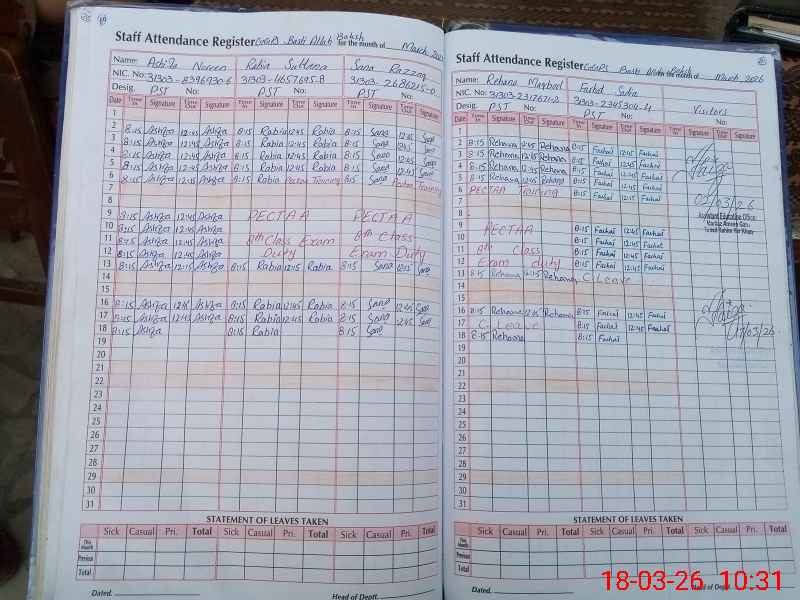 | Name: As**** No**** Designation: (School Headmaster's/Headmistress's) P S T Phone/Cell Number: 03**** |