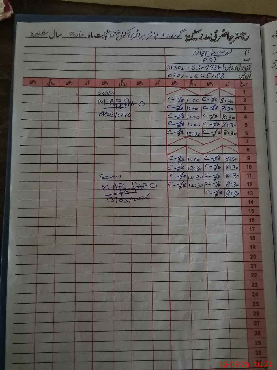 | Name: MU**** BI**** MU**** Designation: (School Headmaster's/Headmistress's) PST/PTC/JV Phone/Cell Number: 03**** |