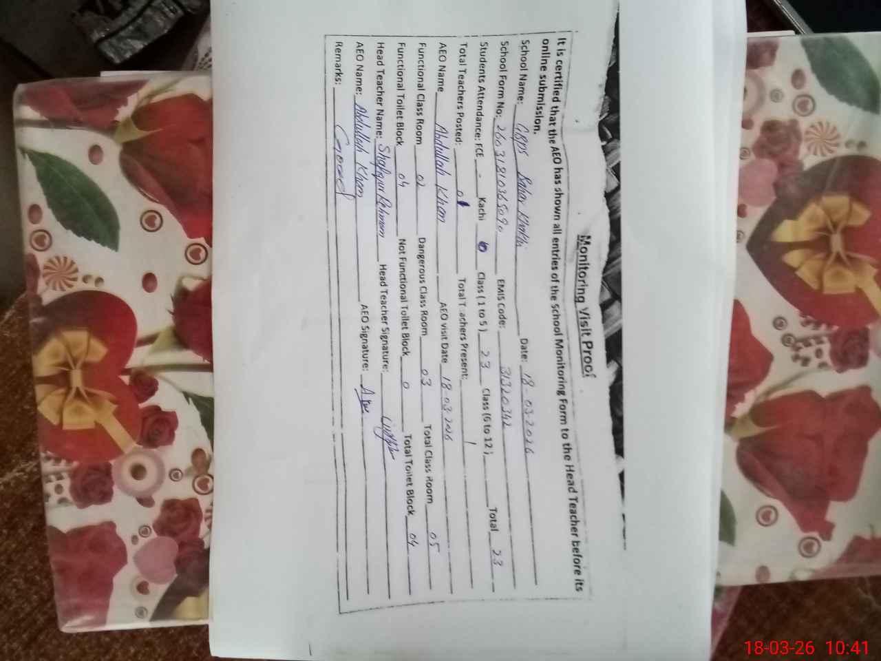 | EMIS Code: 31320342 | Name of School: GPS MOADIB BAHAR KHAKHI | |||