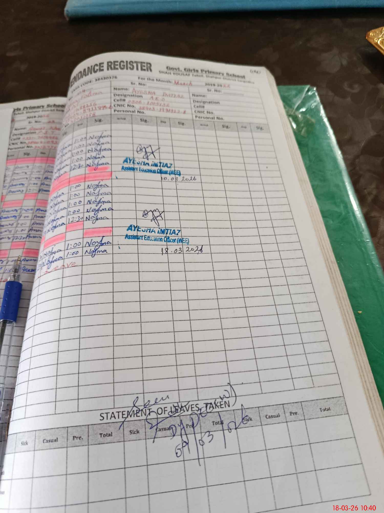 | Name: FA**** NA**** Designation: (School Headmaster's/Headmistress's) PST Phone/Cell Number: 03**** |