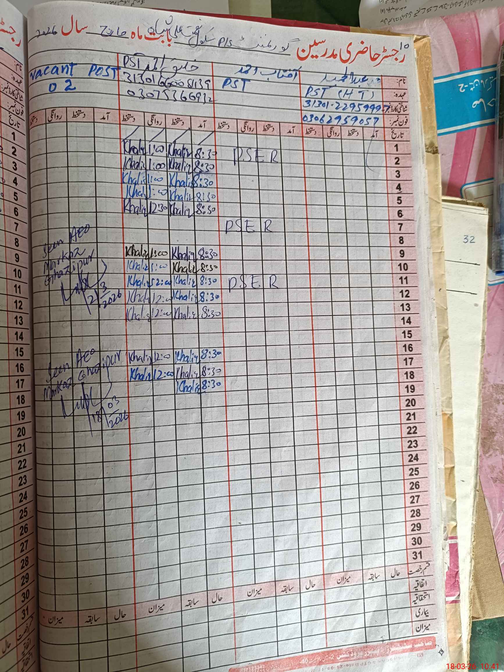| Name: Ab**** Ha**** Designation: (School Headmaster's/Headmistress's) PST Phone/Cell Number: 03**** |