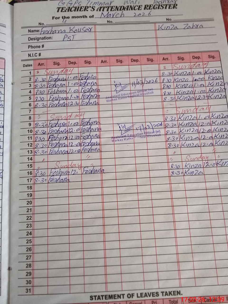 | Name: NA**** FA**** Designation: (School Headmaster's/Headmistress's) PST Phone/Cell Number: 03**** |