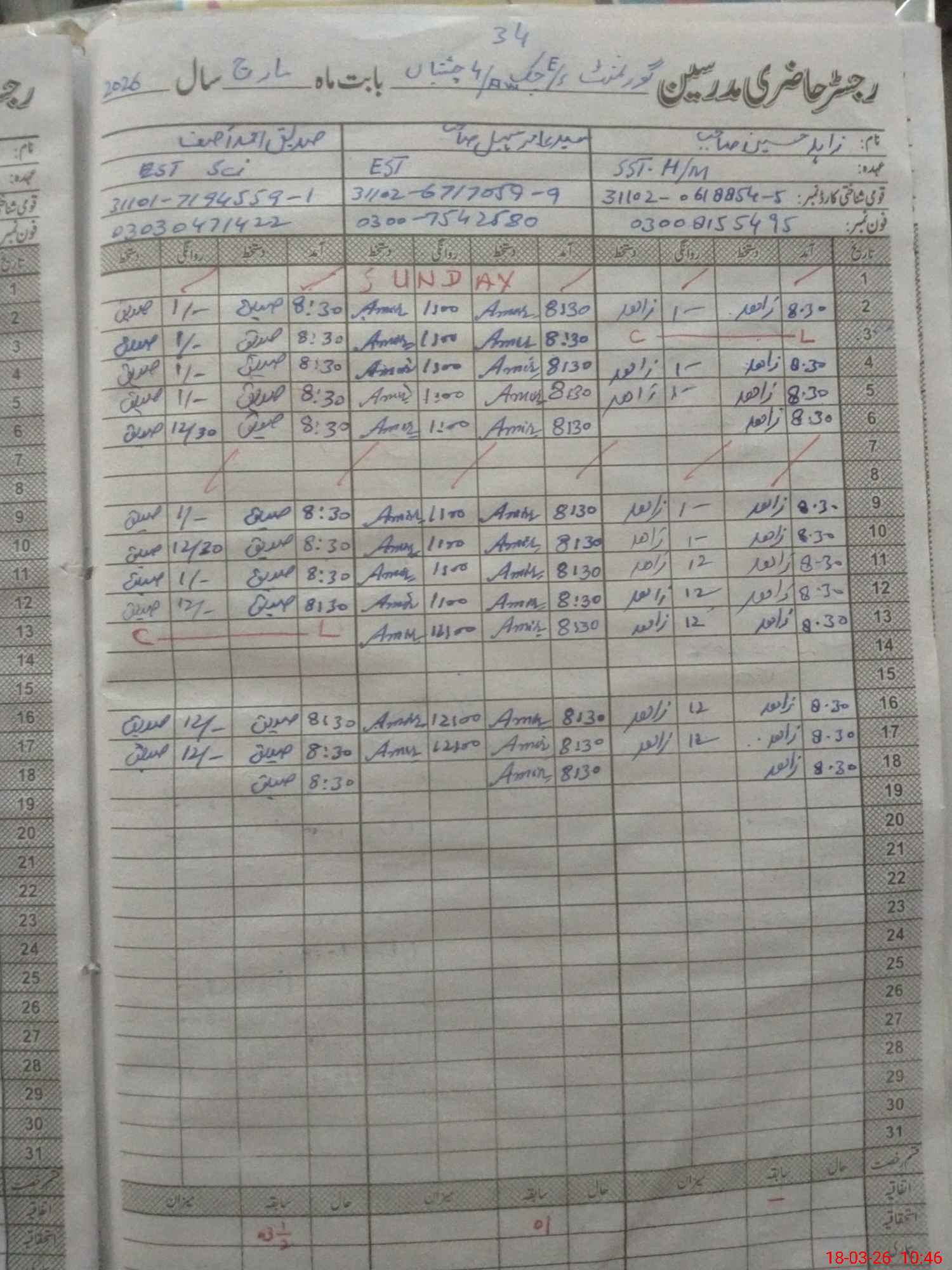 | Name: Za**** Hu**** Designation: (School Headmaster's/Headmistress's) Sst Phone/Cell Number: 03**** |