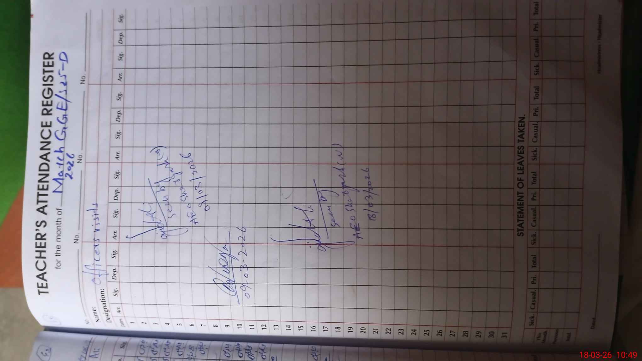 | Attendance Register | Head Teacher | MEA with School | Visit Proof |