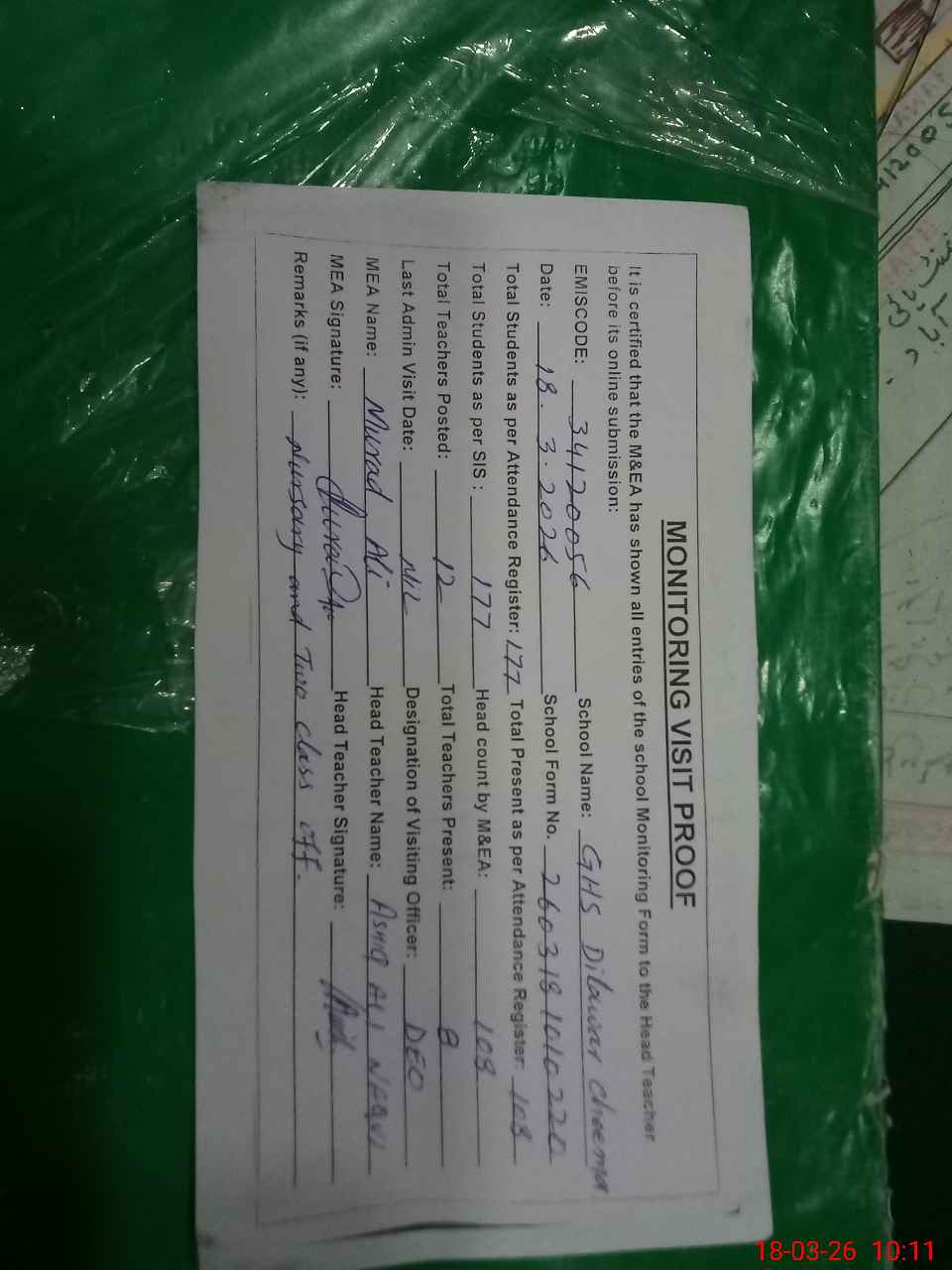 | EMIS Code: 34120056 | Name of School: GHS DILAWAR CHEEMA | |||
