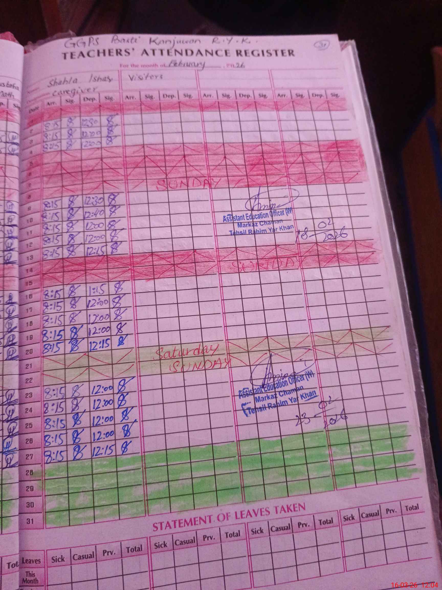 | 31**** | Su**** Re**** | ESE (Arts) | Contract | 0 | 0 | 0 | 0 | 0 | 0 | 0 | 0 | 0 | Absent (Un-Authorized) |
