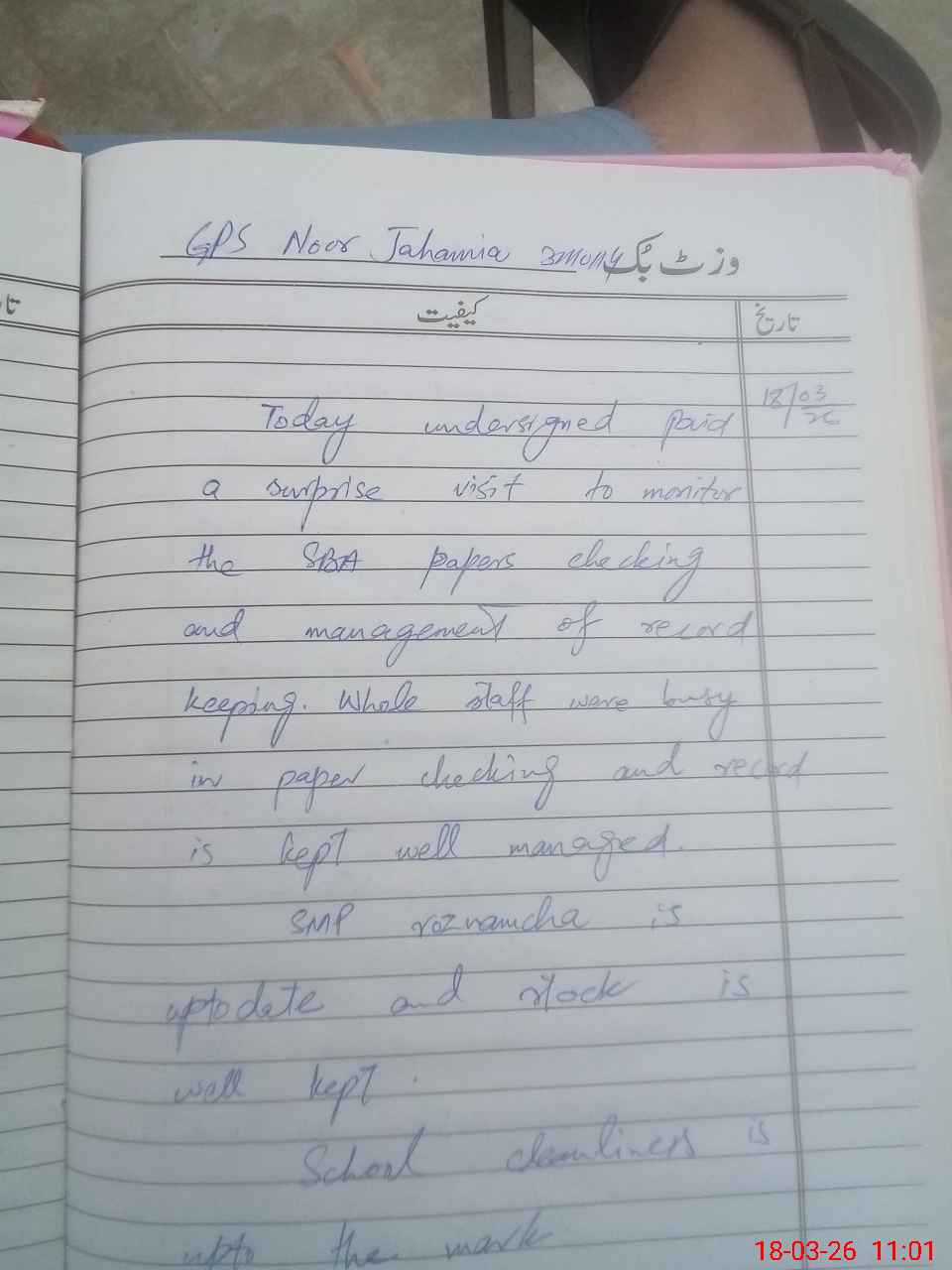 | EMIS Code: 31110114 | Name of School: GPS NOOR JAHANIAN | |||