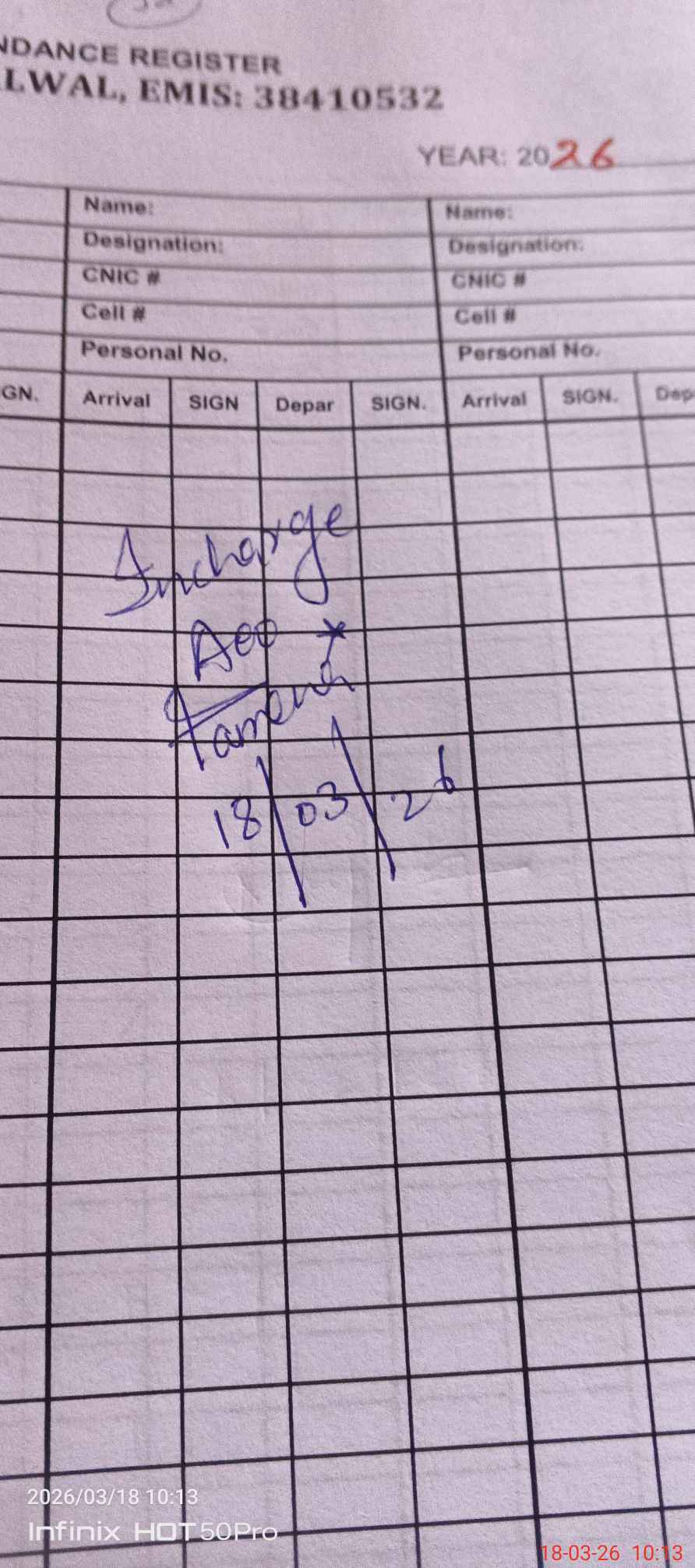 | Name: Sh**** Qa**** Designation: (School Headmaster's/Headmistress's) PST Phone/Cell Number: 03**** |