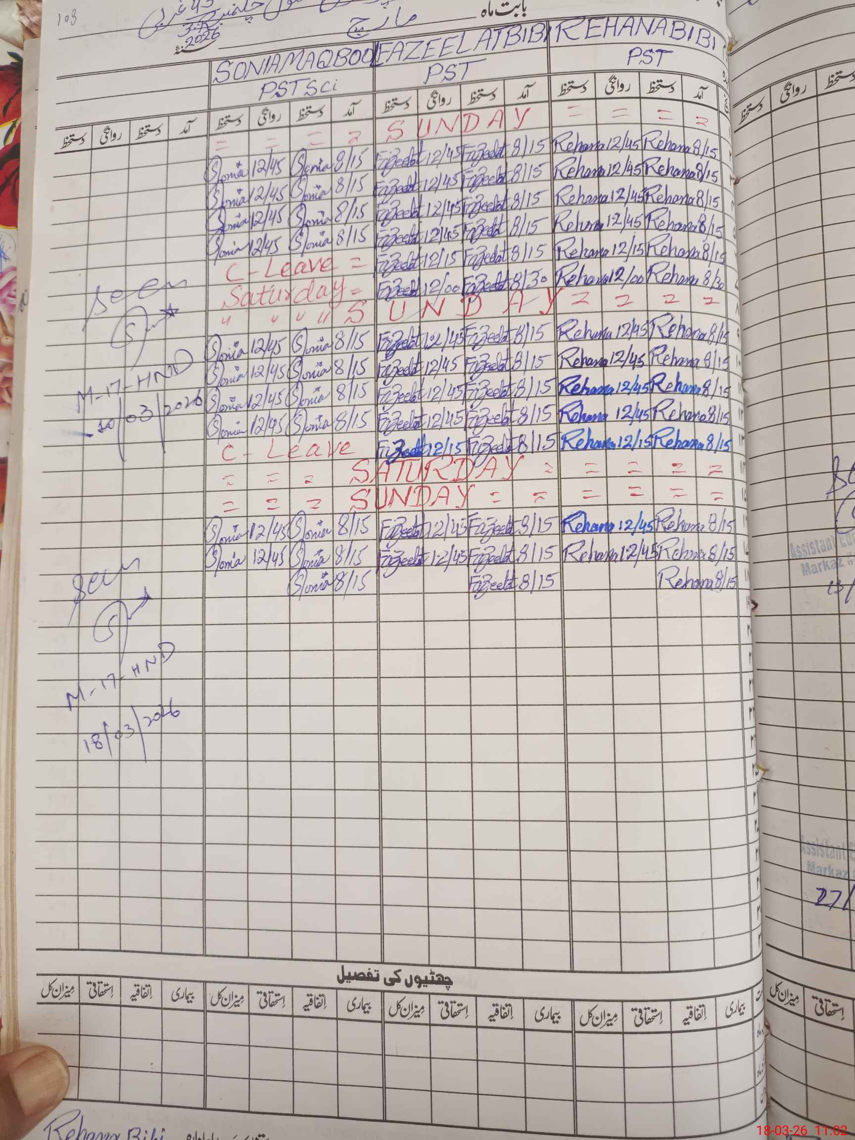 | CNIC | Full Name | Designation | R/C | Absence During Last Calender Month |