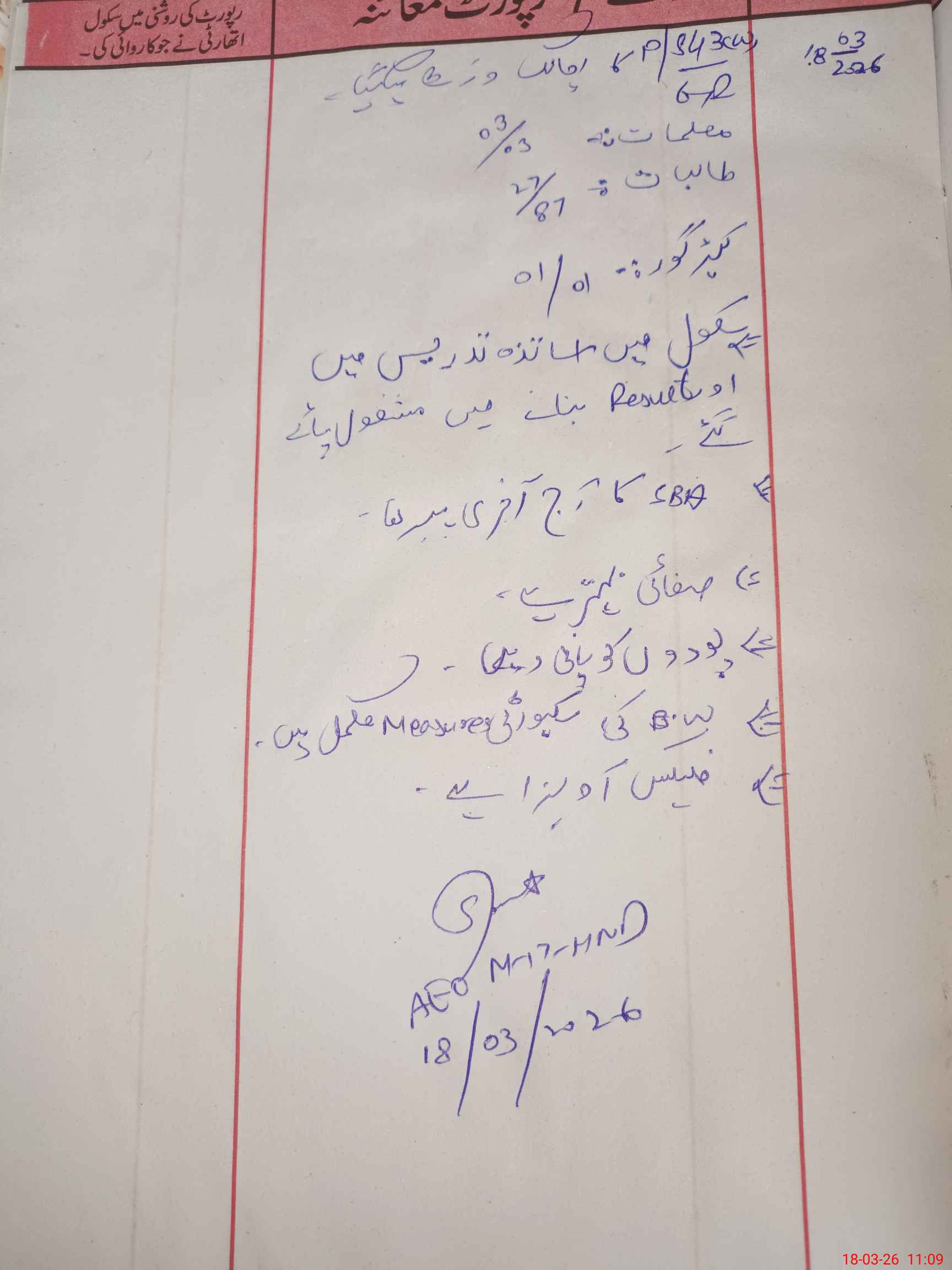 | Name: RE**** BI**** Designation: (School Headmaster's/Headmistress's) PST Phone/Cell Number: 03**** |
